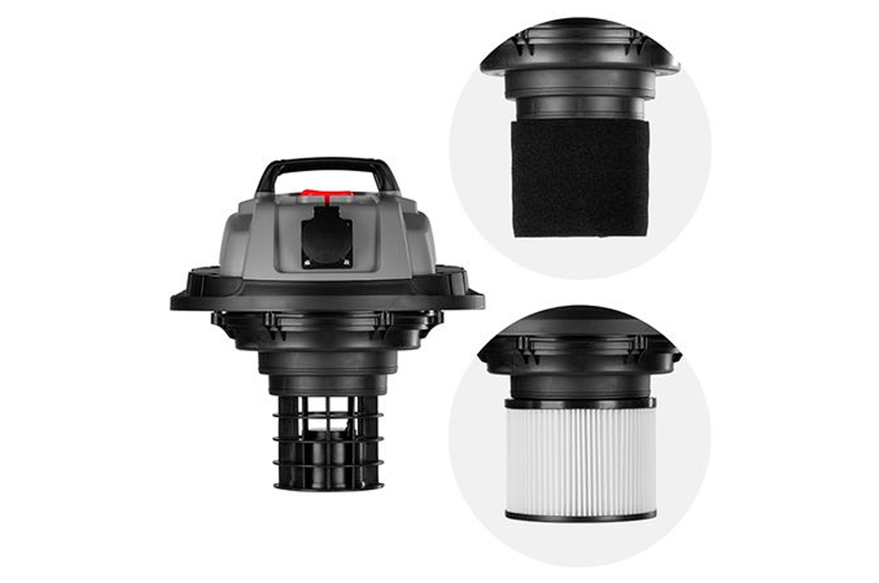 Иногда после проделанной работы остаётся не меньше грязи, чем удовольствия от результата. Именно для таких случаев создан строительный пылесос DT-1025 — компактный, удобный и надёжный помощник, с которым уборка становится проще. Пылесос работает от обычной розетки и оснащён производительным двигателем, мощностью 1400 Вт. Эффективно справляться с уборкой любого строительного мусора, а рабочее разряжение составляет 17 кПа. Для большего удобства совместной работы с электроинструментами, на пылесосе предусмотрена розетка 220 Вольт, с помощью которой можно запитать инструмент. Пылесос оснащён прочным баком из нержавеющей стали марки 410 — он устойчив к механическим повреждениям и коррозии, а специальные рёбра жёсткости придают дополнительную прочность и стабильность при эксплуатации. Внутри установлен двигатель с медной обмоткой, что гарантирует долгий срок службы и стабильную работу даже при высоких нагрузках. Комплектация Пылесос Фильтр-мешок бумажный Фильтр-спонж Фильтр HEPO Щелевая насадка