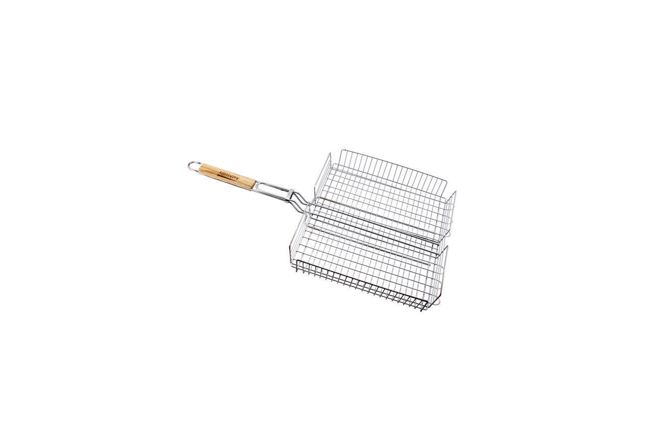 Неравнодушны к сочному стейку или куриным крылышкам ? Для их приготовления на костре не обойтись без специального оборудования. Решетка-гриль Empire - 320 x 250 x 50 мм – универсальная модель. Приспособление выполнено из нержавеющей стали, что полностью исключает деформацию, окисление и коррозию. Удалить с такой поверхности масло, жир, нагар будет максимально легко. Привычная прямоугольная форма гриля позволяет рационально разместить кусочки мяса для равномерной прожарки со всех сторон. Глубина лотка – 5 см. Продуманная конструкция надежно удерживает продукты внутри. А мелкоячеистая структура не дает содержимому выпасть сквозь сетку. Длинная ручка с деревянной вставкой – дополнительное преимущество у данной модели. Она обезопасит ваши руки от термического воздействия. Приобрести решетку-гриль несомненно стоит. Вы сможете приготовить мясо на мангале без капли масла и сохранить все полезные компоненты продукта.
