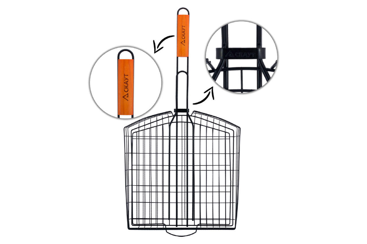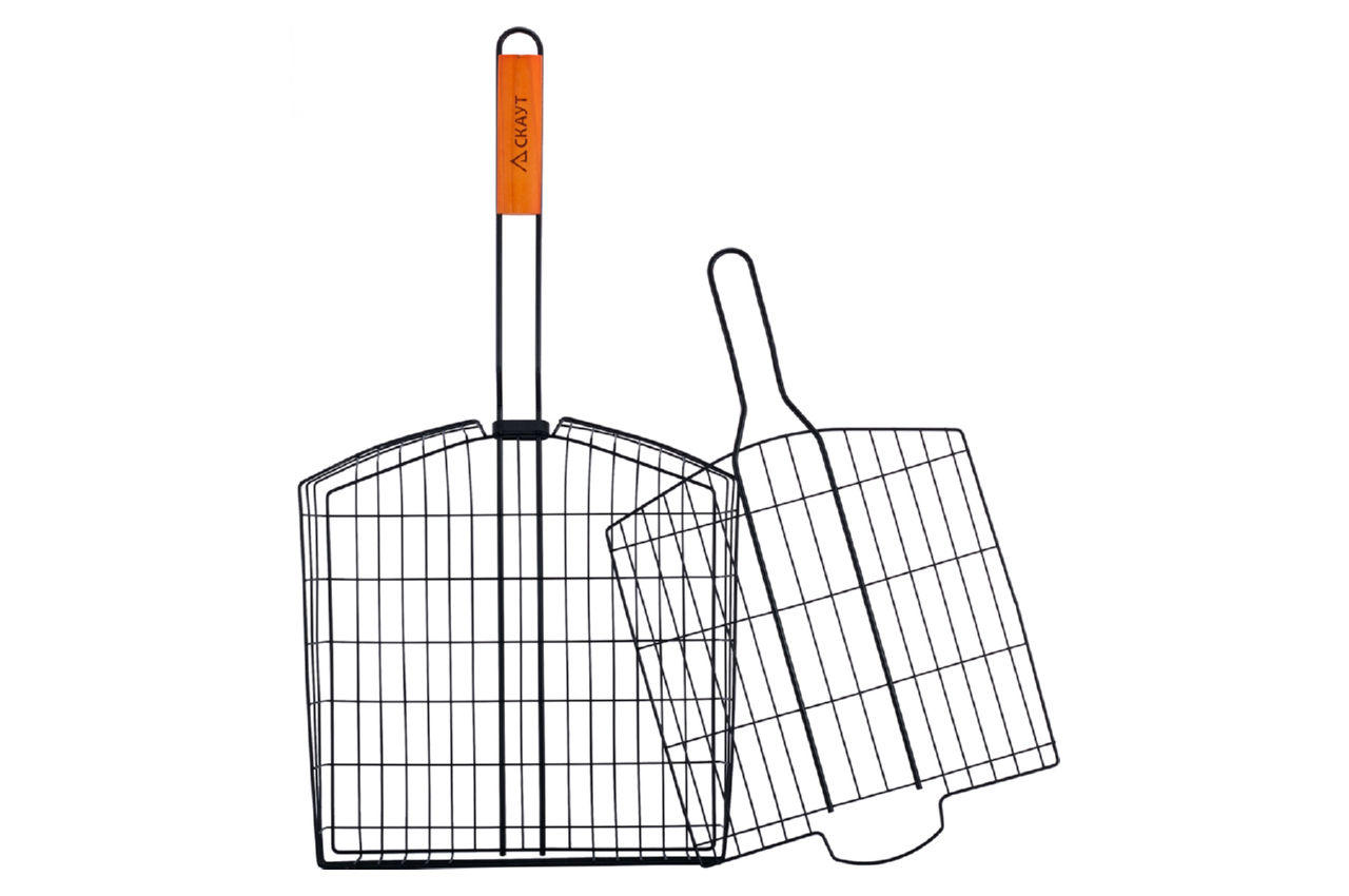 Решетка-гриль Скаут - 305 x 320 x 55 мм антипригарная с ее помощью можно легко и быстро приготовить мясные стейки, рыбу и овощи на мангале. Благодаря антипригарному покрытию продукты не пригорают к решетке. Удобная ручка с деревянной вставкой не нагревается. Благодаря надежной фиксации и прижиму продукты прожариваются равномерно, а интересная форма переплетения прутьев придаст очень аппетитный вид готовому блюду.