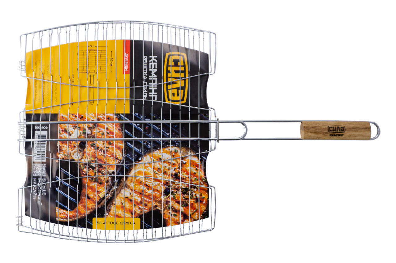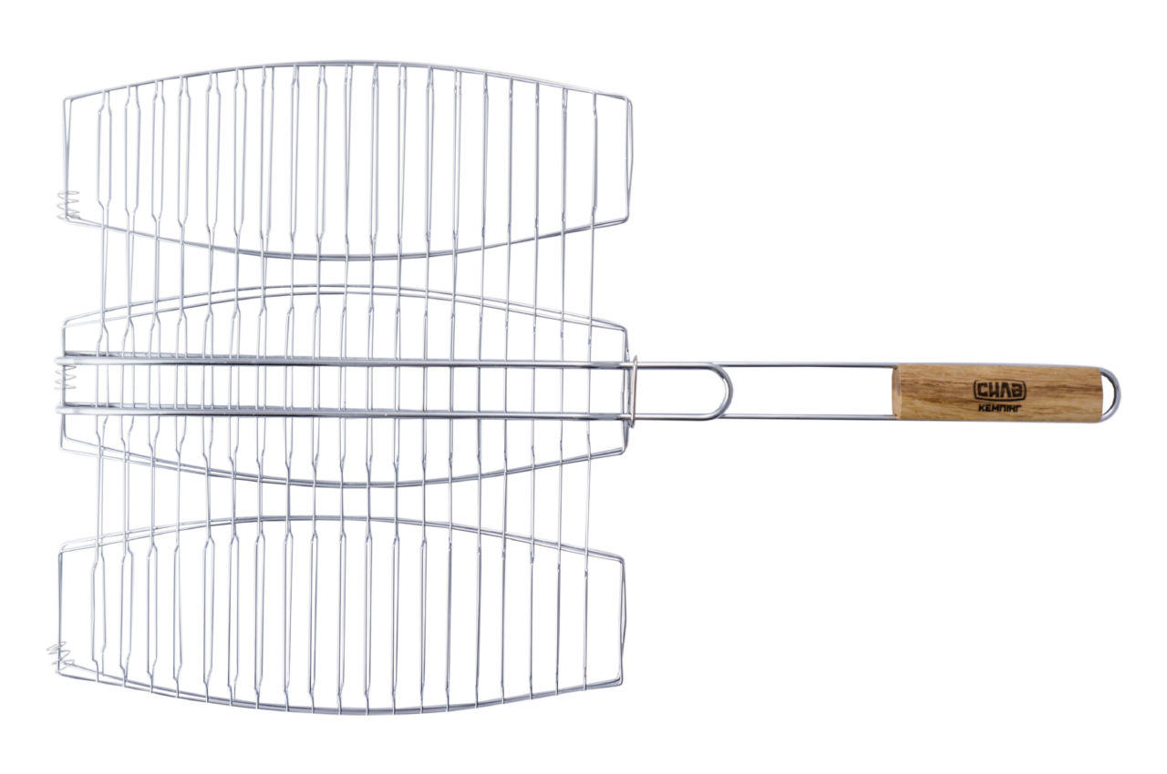 Решетка-гриль Скаут - 400 x 360 мм для рыбы это лучший выбор для тех, кто любит пожарить рыбу и другие продукты на пикнике или на даче. Данная модель выполнена из прочной хромированной стали. Решетка состоит из двух половин, с кольцом фиксации, ручка из дерева. Благодаря специальной форме, надежной фиксации и прижиму рыба прожаривается равномерно, а интересная форма переплетения прутьев придаст очень аппетитный вид готовой рыбе.
