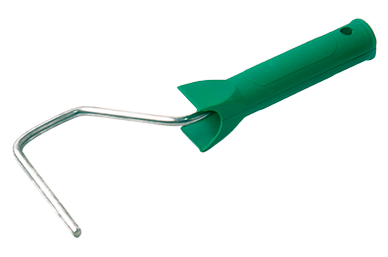 Ручка для валика Сила представляет собой деталь, которая состоит из рукоятки и стального изогнутого прутка. Рукоятка изготовлена из пластика красного цвета. Отверстие на рукоятке позволяет хранить инструмент в подвешенном положении на гвоздике. Стальной хромированный прут обладает высокой прочностью, что исключает вероятность его деформации при эксплуатации. Ширина стального прутка для валика составляет 60 мм, а диаметр крепления равен 6 мм.