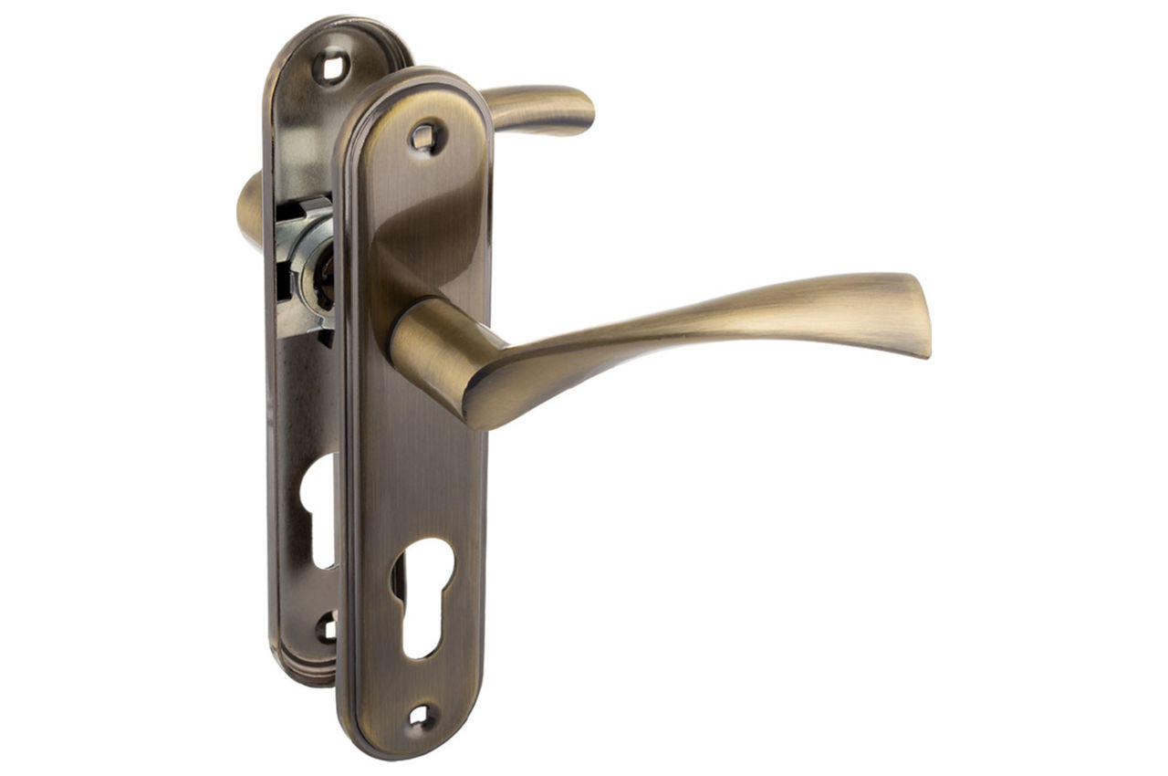 Дверная ручка FZB ET-002 на планке с проемом под цилиндр – надежное решение для межкомнатных дверей. Изящное покрытие в цвете античная бронза (AB) придает классический вид, а прочная конструкция обеспечивает долговечность и комфорт в повседневном использовании. Ручка изготовлена из металла (планка) и алюминия (ручка), что делает ее легкой, но крепкой. Подходит для дверей толщиной 35–45 мм. Расстояние между ручкой и отверстием под цилиндр: 62 мм.