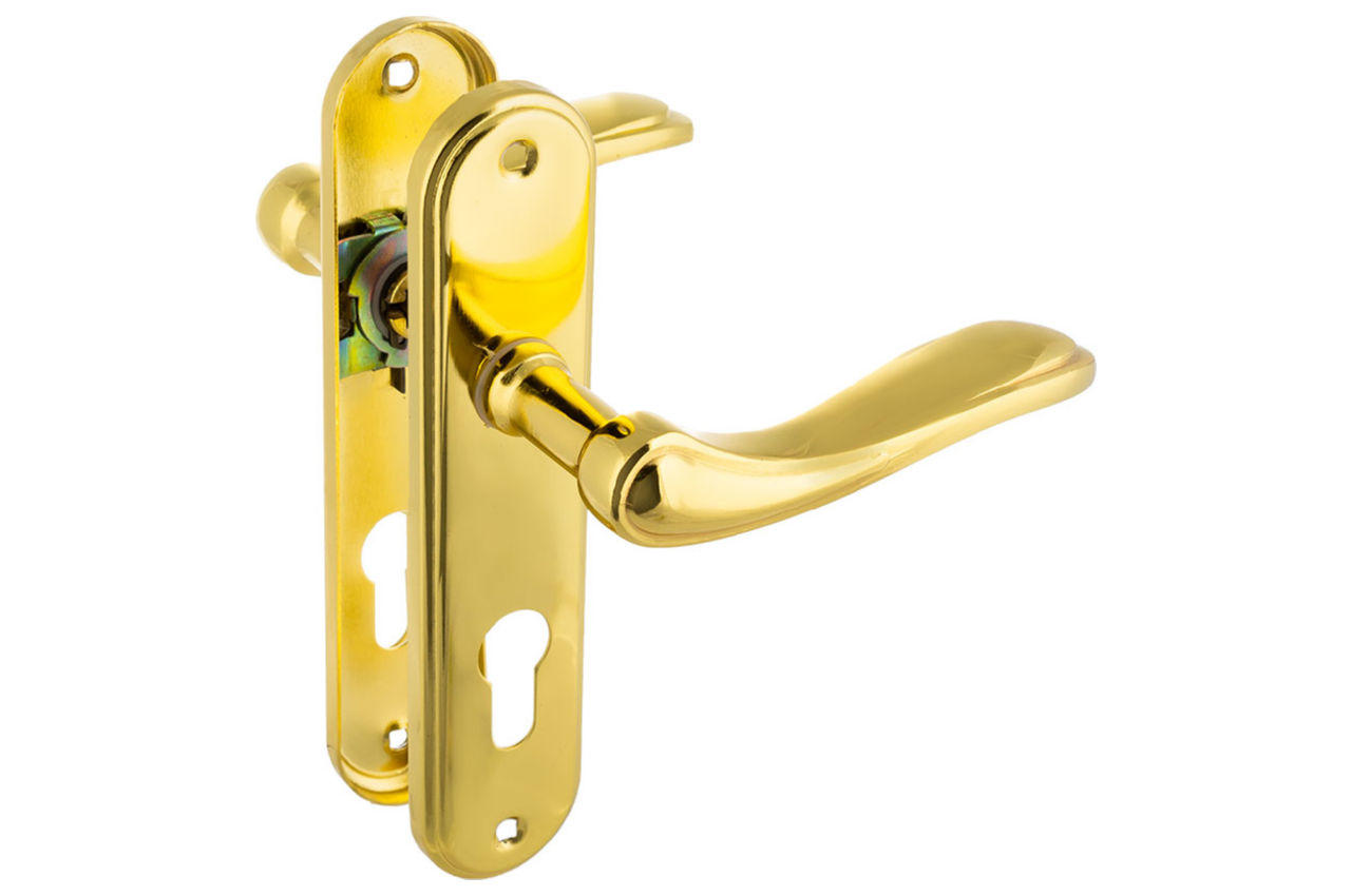 Дверная межкомнатная ручка на планке с отверстием под цилиндр. Предназначена для замков без сердцевины с защелкой и фиксатором. Изготовлен из высококачественного материала, имеет долговечное покрытие, что обеспечивает эстетичный вид и надежность в использовании. Идеально подходит для межкомнатных дверей дома или офиса.
