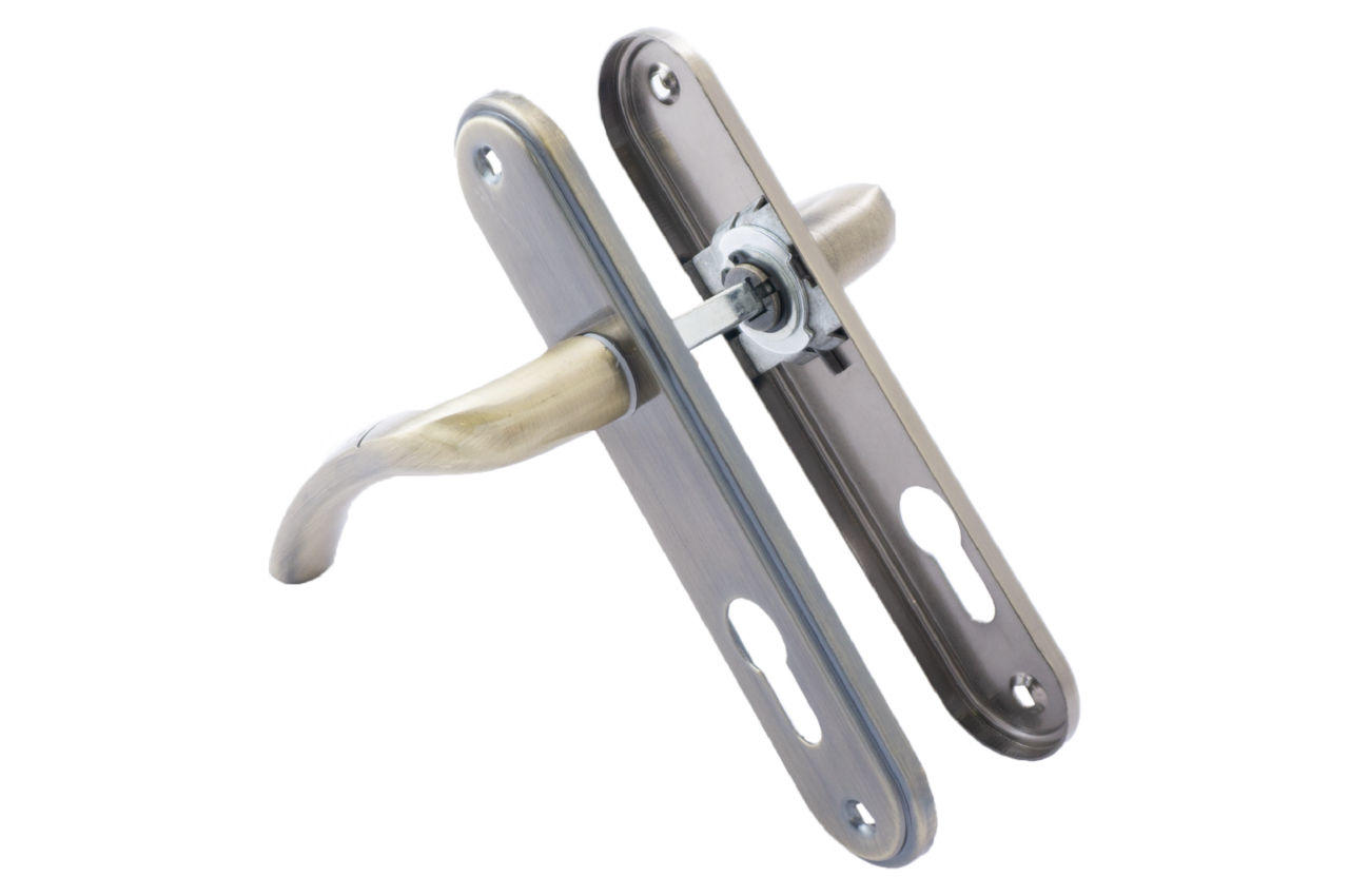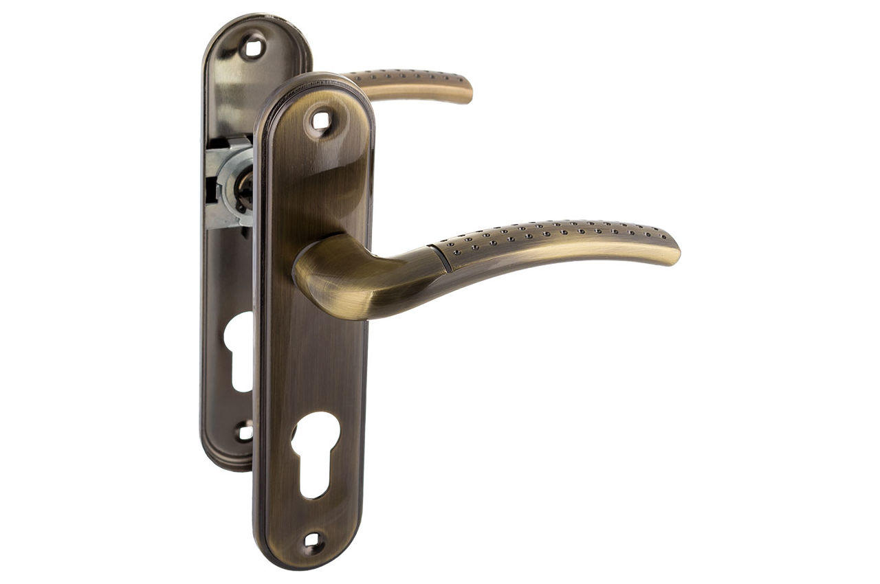 Межкомнатная ручка FZB ET-71106 на планке с проемом под цилиндр – классическое решение для деревянных или металлопластиковых дверей. Античное бронзовое покрытие (AB) придает стилю и эстетике, а корпус из металла и цинка гарантирует долговечность и надежность в ежедневном использовании. Расстояние между ручкой и отверстием под цилиндр: 62 мм.