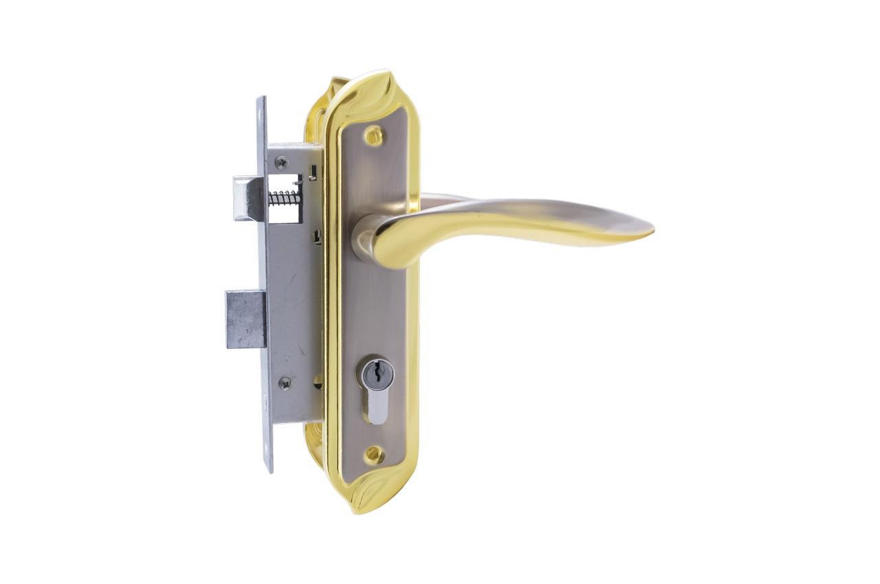 Ручка на планке с корпусом FZB – 58 мм ЕТ-191 SN/PB (сатин/полированная латунь) Комплект включает в себя дверную ручку на планке, врезной замок и ключи. Ручка изготовлена из алюминия, планка из металла для длительного использования. Межосевое расстояние – 58 мм. Покрытие сатин/полированная латунь (SN/PB) придает модели элегантный контраст и благородный вид, устойчивый к царапинам и окислению. Подходит для разных типов дверей.