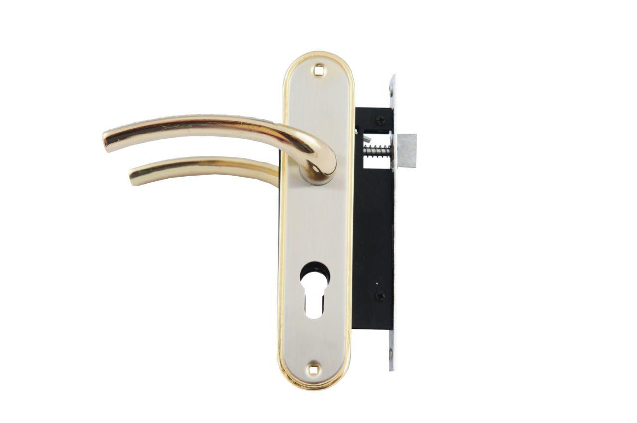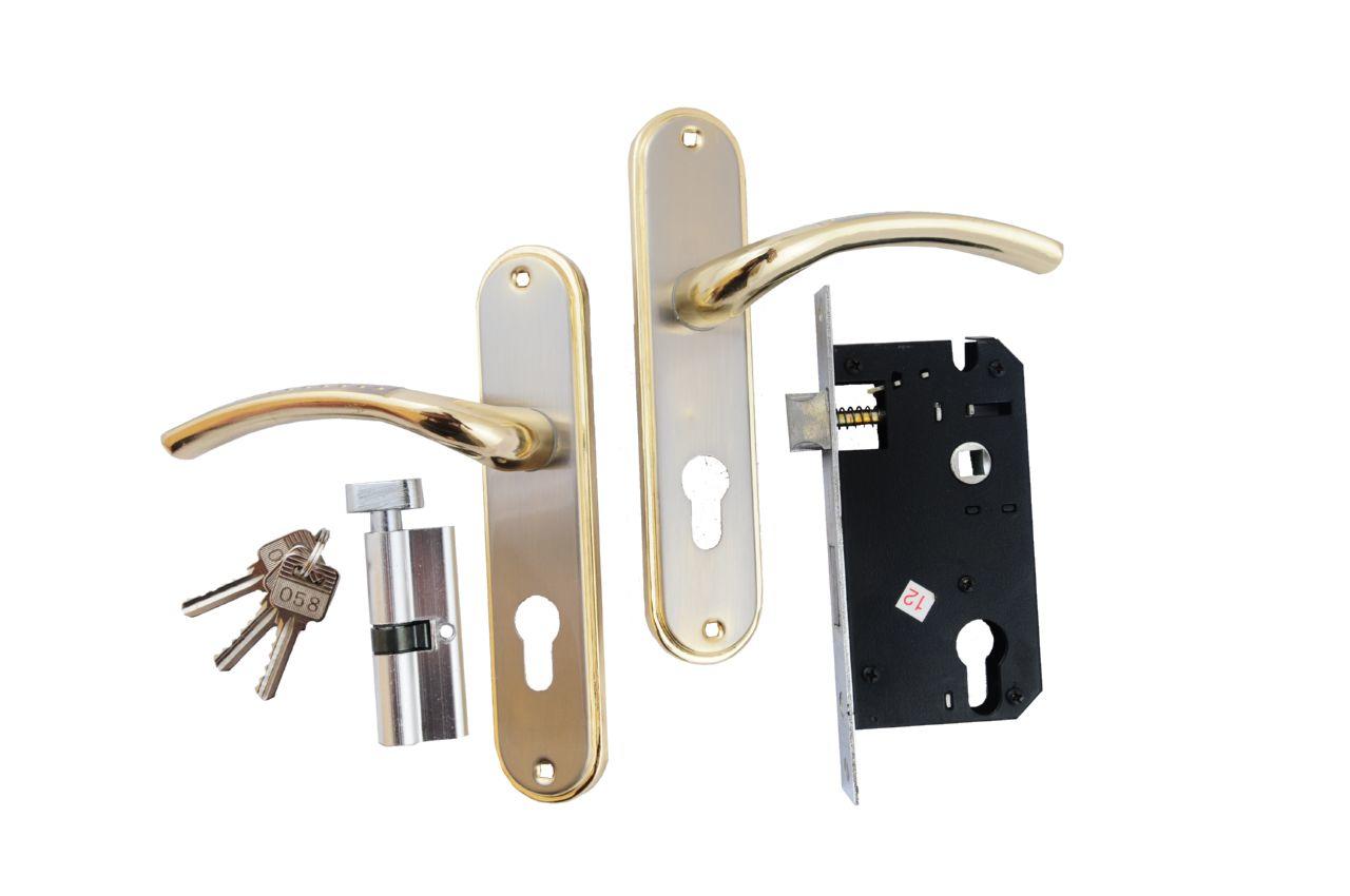 Ручка дверная на планке с корпусом замка и секретом (3 ключа). Ручка - алюминий. Планка - металл. Межосевое расстояние - 58мм.