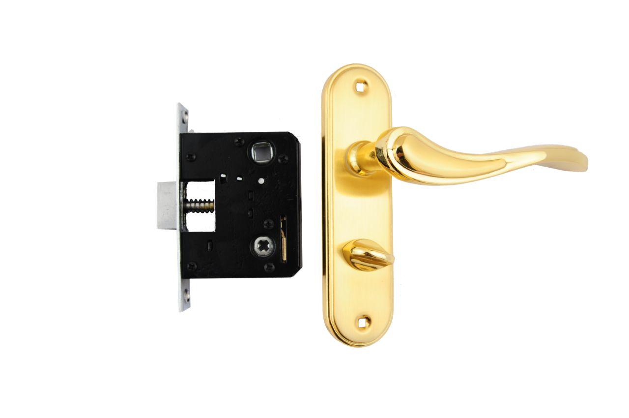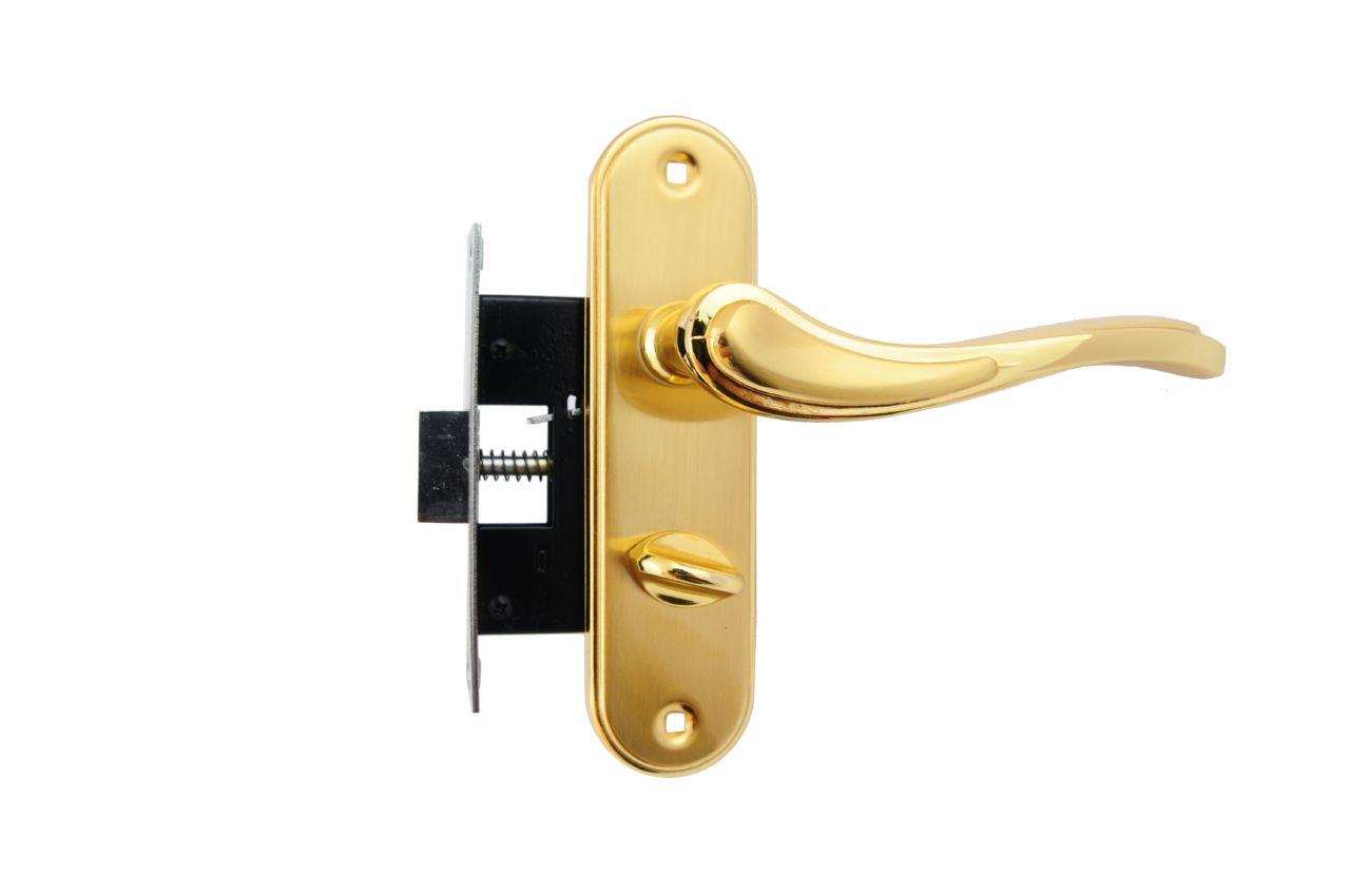 Ручка дверная на планке в комплекте с врезным замком под фиксатор. Материал: металл-планка/алюминий-ручка.