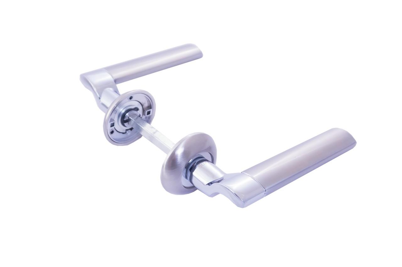 Ручка дверная на розетке. Материал: цинк-розетка, алюминий-ручка.