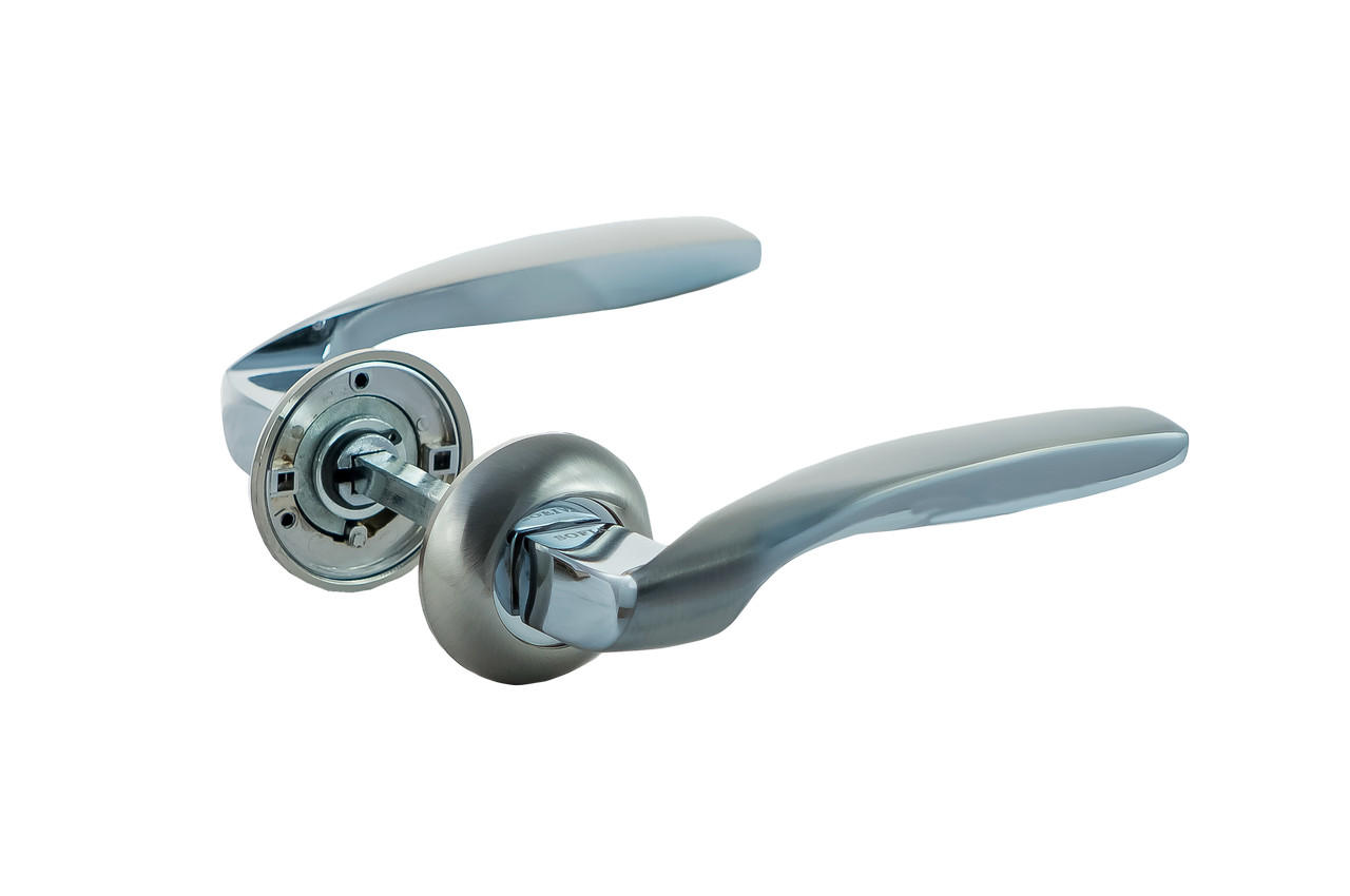 Ручка дверная на розетке. Материал: цинк-розетка, алюминий-ручка.