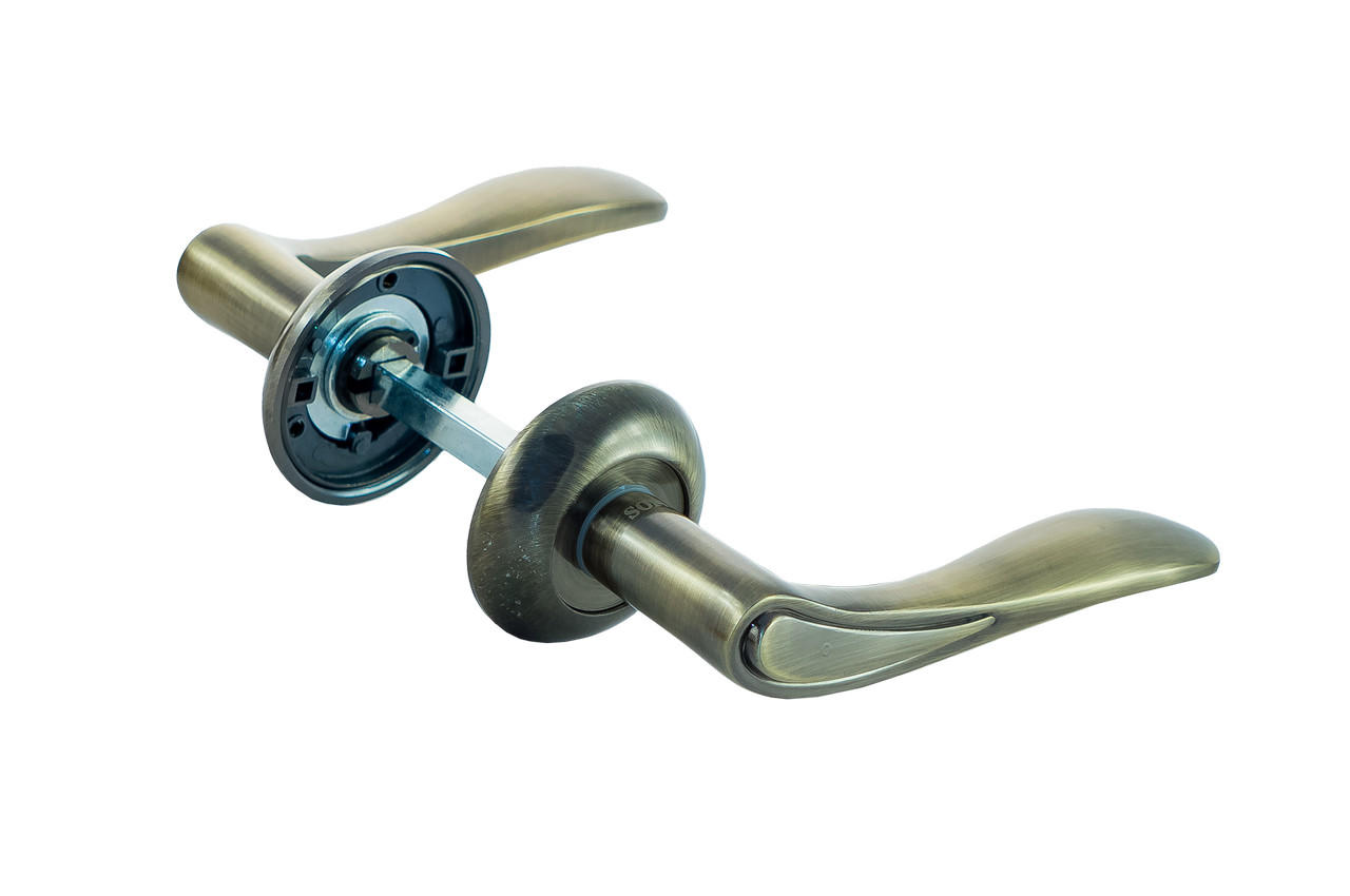 Ручка дверная на розетке. Материал: цинк-розетка, цинк-ручка.
