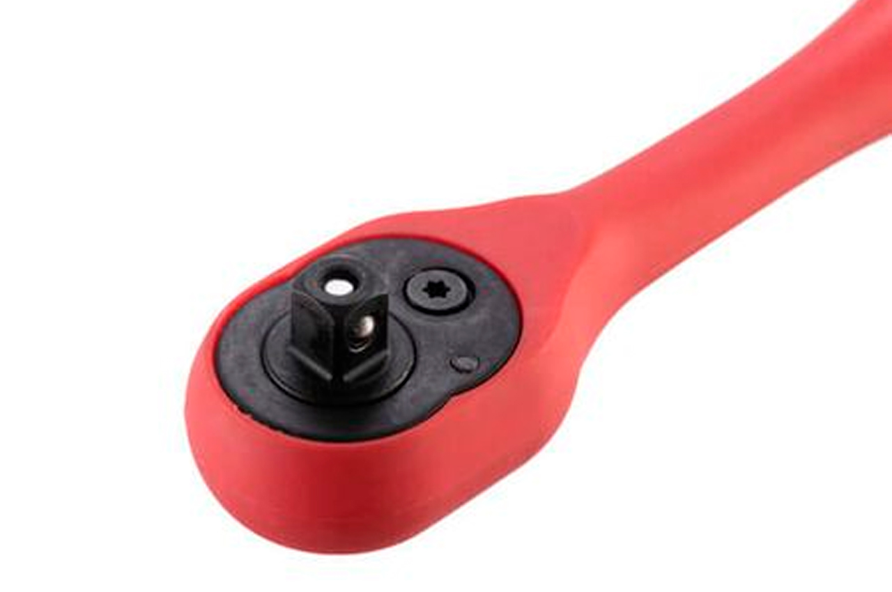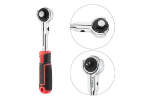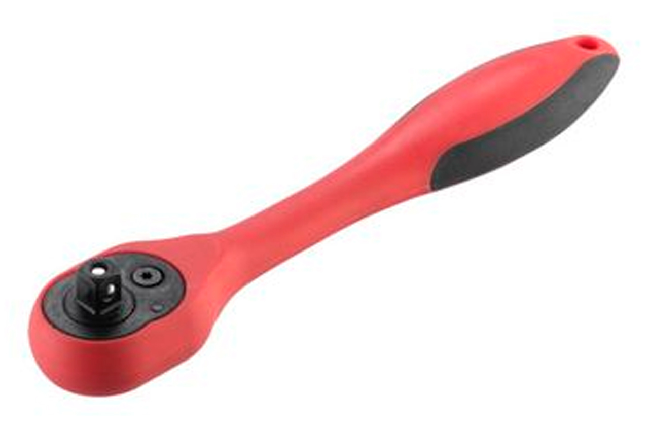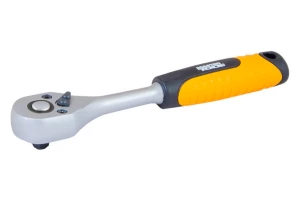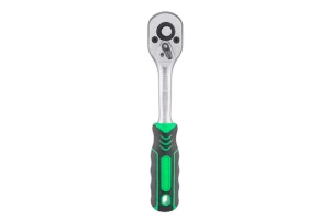 Хром-ванадиевая сталь, квадрат 1/4". Двухпомпонентная рукоятка. Храповой механизм с 72-мя зубьями. Трещотка имеет флажок переключения направления вращения и кнопку быстрого сброса головки. Храповый механизм трещотки с 72 зубьями обеспечивает малый шаг перескока.