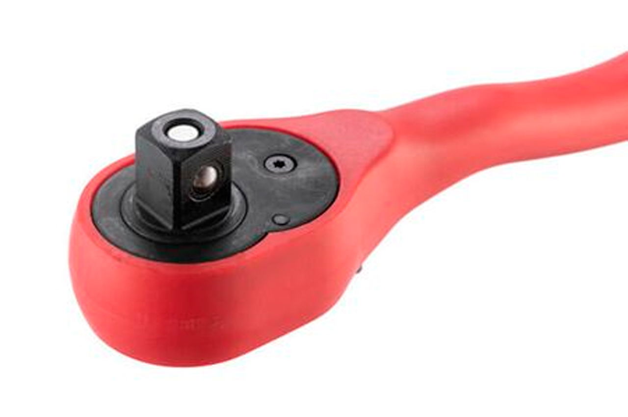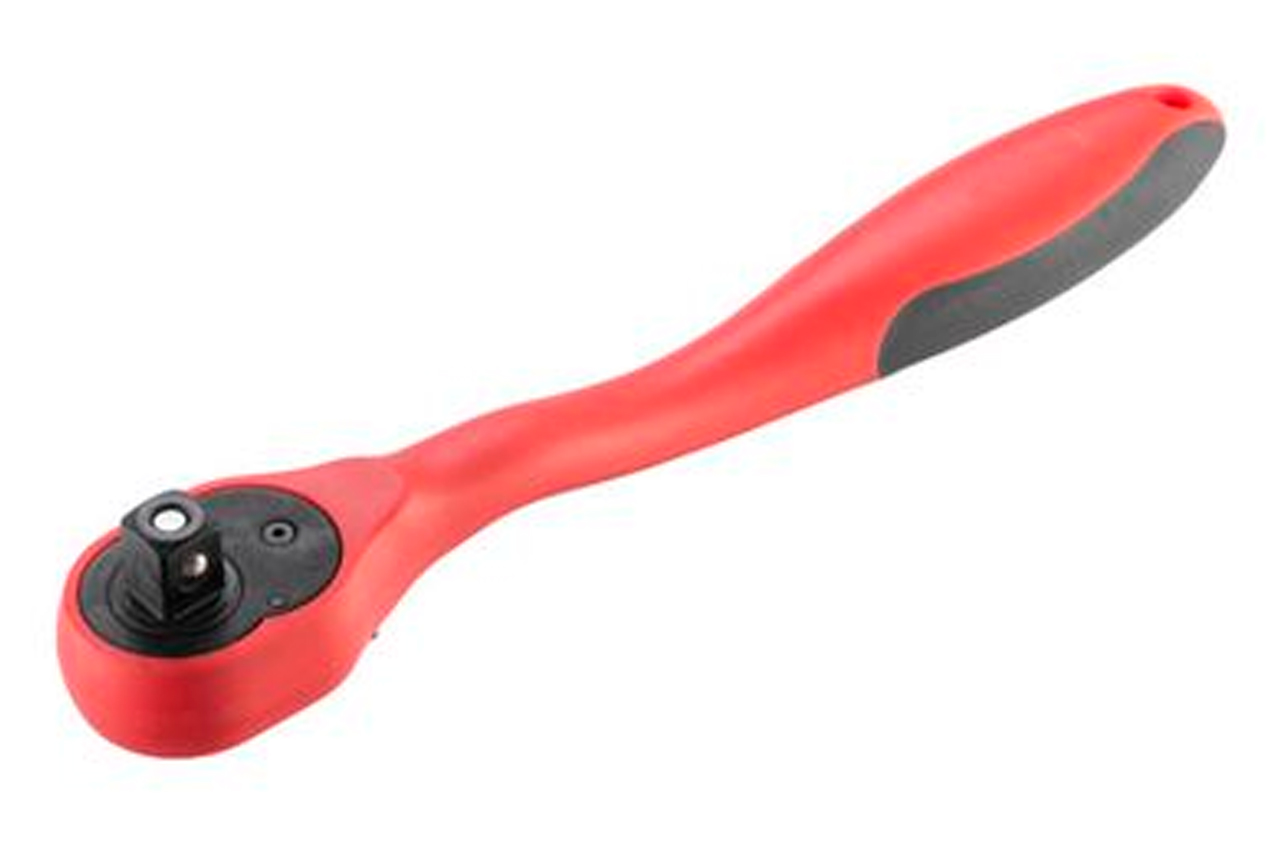 Рукоятка с храповым механизмом изогнутая (трещотка) на 72 зуба. Рукоятка подходит для головок с квадратом в 1/2". Рукоятка предназначена для работы с гайками и болтами. Без особых усилий, прилагаемых на рукоятку вы можете как откручивать, так и закручивать гайки и болты. Эргономичная двухкомпонентная рукоятка, приятна на ощупь. Хромванадиевая сталь рукоятки обеспечивает изделию прочность, износостойкость. долговечность. Если вы еще пользуетесь гаечными ключами, то пора задуматься и над покупкой трещотки. Естественно, что к трещотке еще нужно приобрести головки нужного размера. А еще лучше, купить набор инструментов, в котором есть и трещотки, и головки. Выбор головок стал еще более простым и удобным. При нажатии на металлическую кнопку, находящуюся в верхнем основании рукоятки, вы с легкостью снимаете головку с гнезда. Подробнее о новинке Квадрат: 1/2"