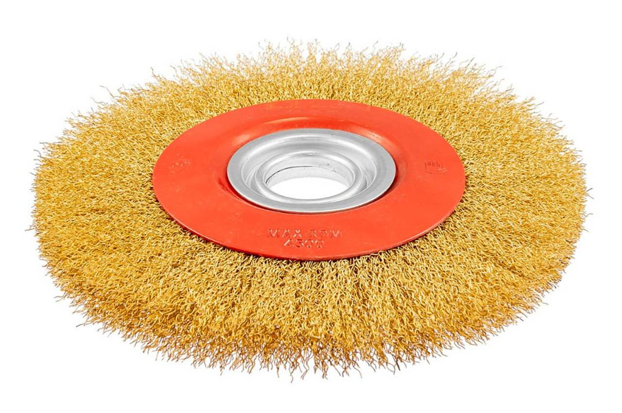 Щетка дисковая с рифленной проволокой. Предназначена для работ по дереву, бетону, металлу и лакокрасочным покрытиям при оборотах не более 4500 об/мин. Диаметр щетки 200 мм, посадочного отверстия - 32 мм.