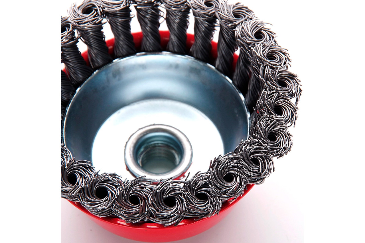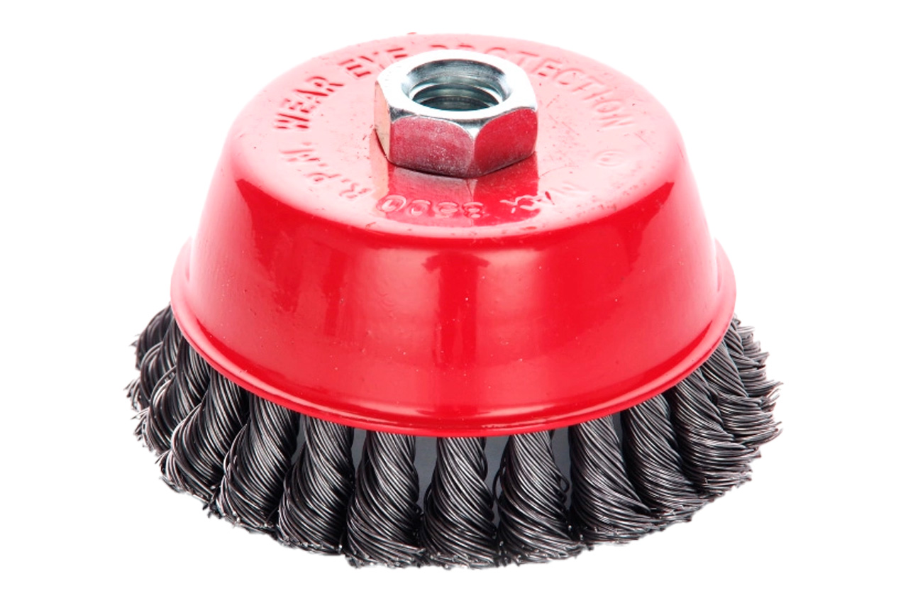 Щетка дисковая с плетеной проволокой. Предназначена для работ по дереву, бетону, металлу и лакокрасочным покрытиям.