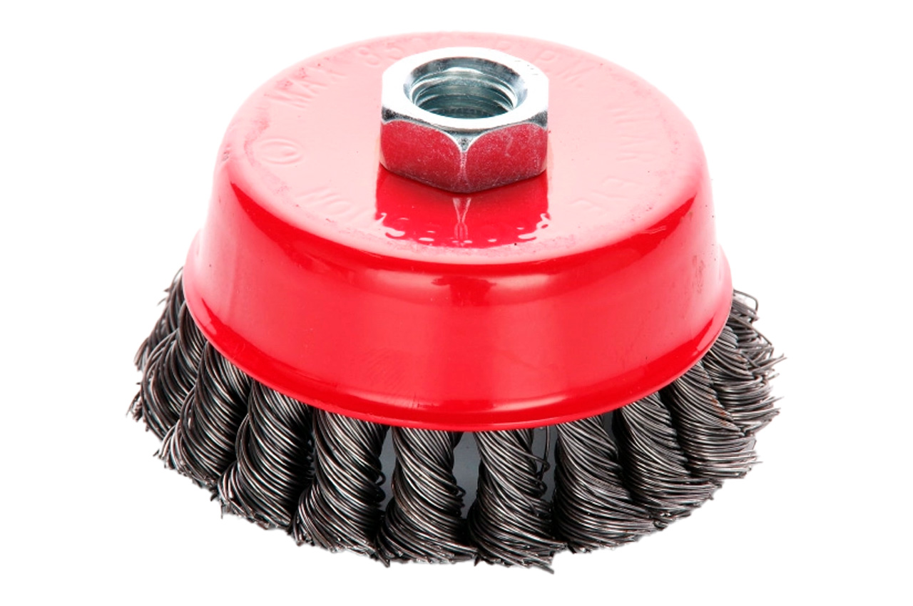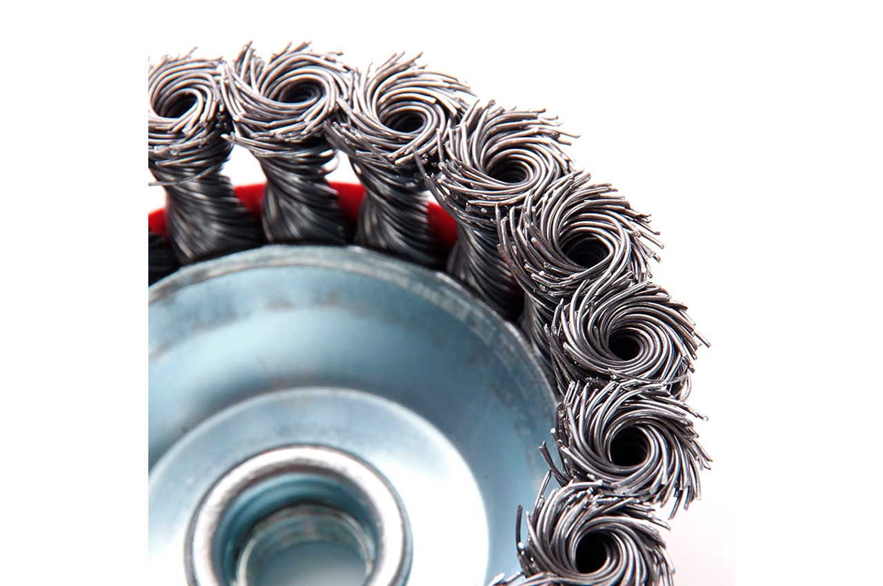 Щетка дисковая с плетеной проволокой. Предназначена для работ по дереву, бетону, металлу и лакокрасочным покрытиям.
