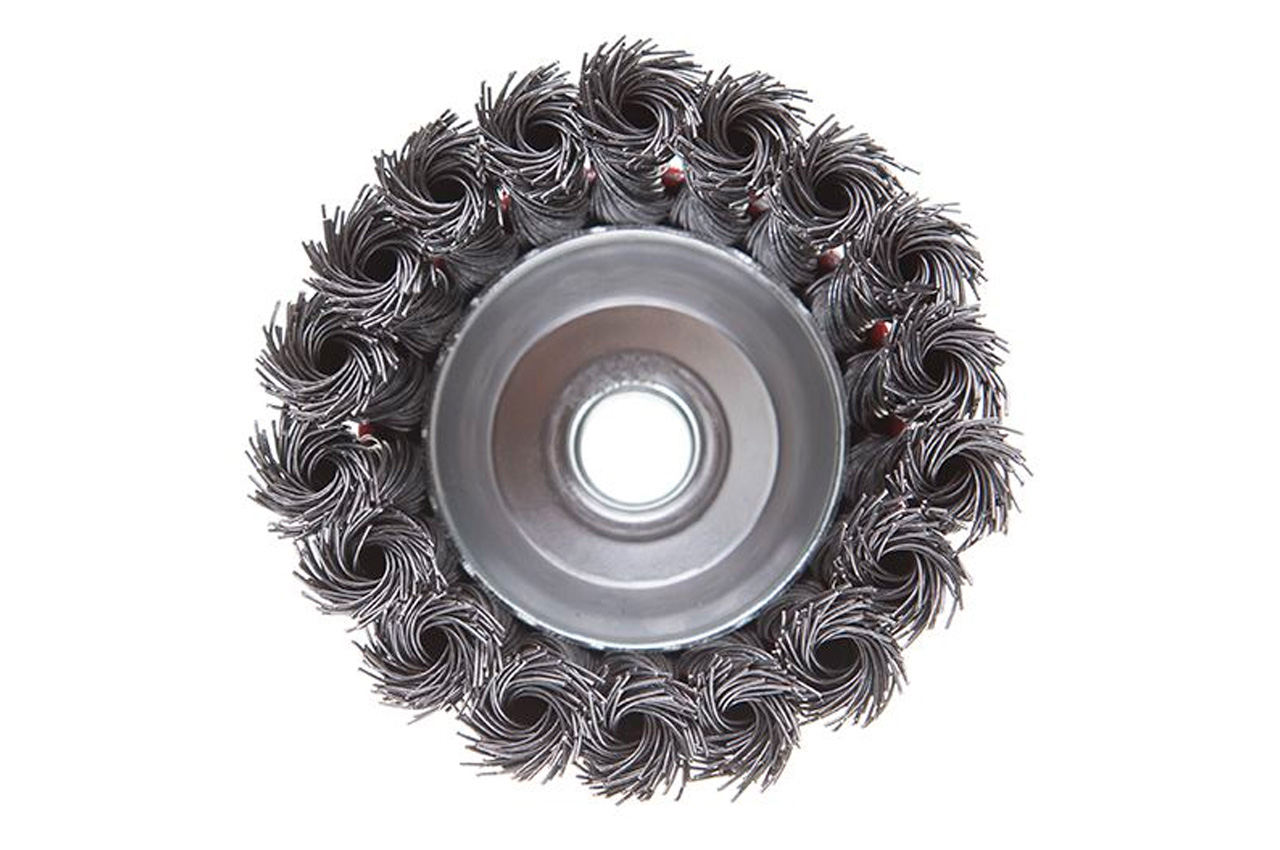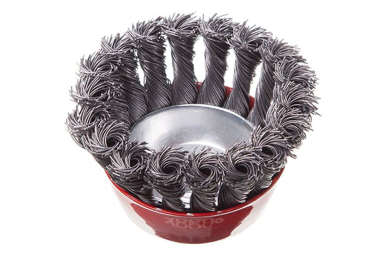 Щетка торцевая (чашечная) с плетеной проволокой для УШМ. Предназначена для работ по дереву, бетону, металлу и лакокрасочным покрытиям. Диаметр 85 мм. Скорость вращения: 8500 об/мин. Тип проволоки: плетенная проволока; Скорость вращения: 8500 об/мин; Диаметр щетки: 85 мм; Диаметр проволоки: 0,5 мм; Держатель: М14; Применение: для дерева, бетона, металла и лакокрасочных покрытий