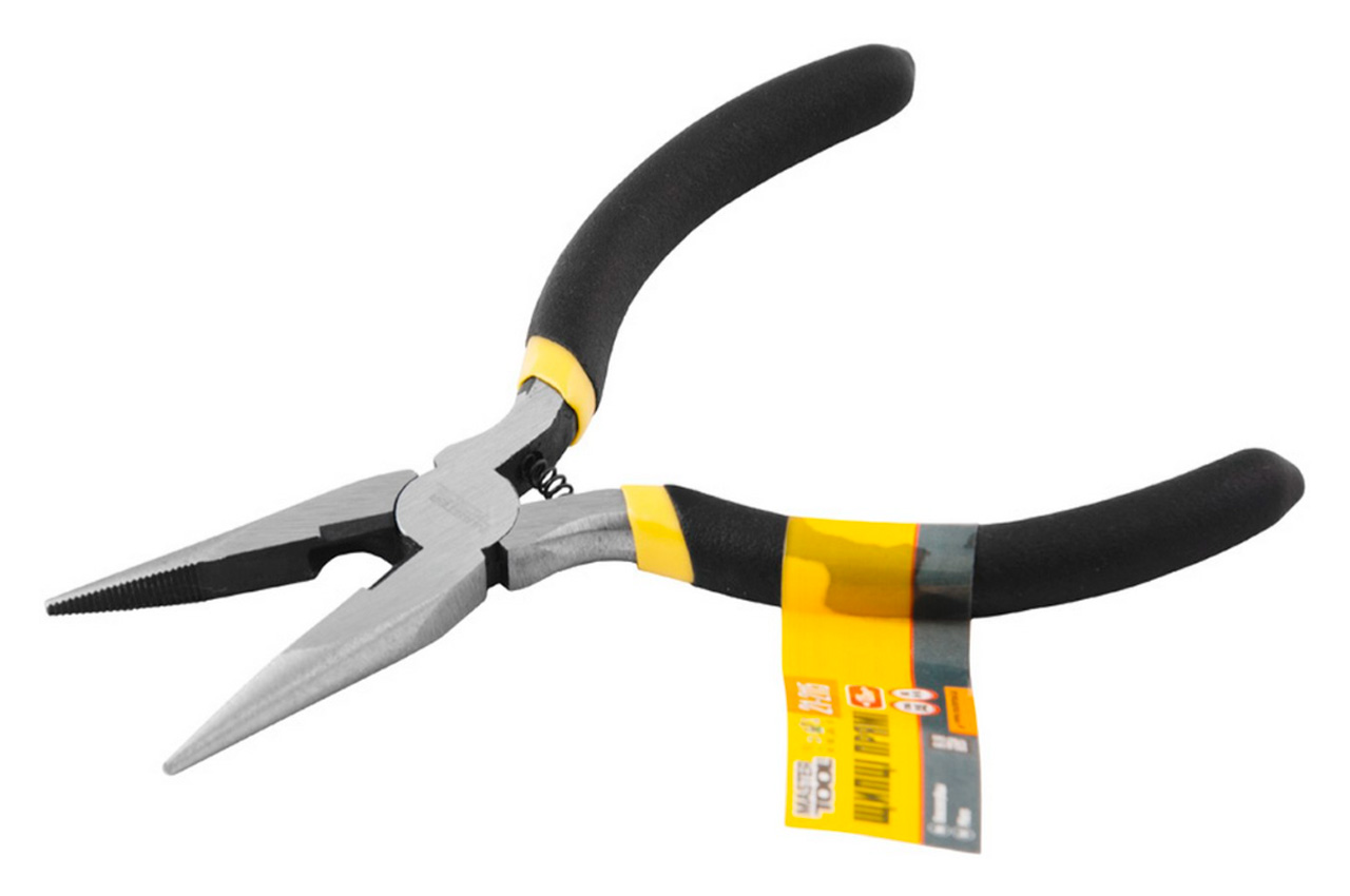 Щипцы длиной 135 мм, изготовленные из высокоуглеродистой стали, Ручки имеют покрытие из термопластичной резиныУзкие рабочие поверхности имеют ребристую насечку и заостренные кромки возле шарнира. Применяются для выполнения слесарных, монтажных и других работ.