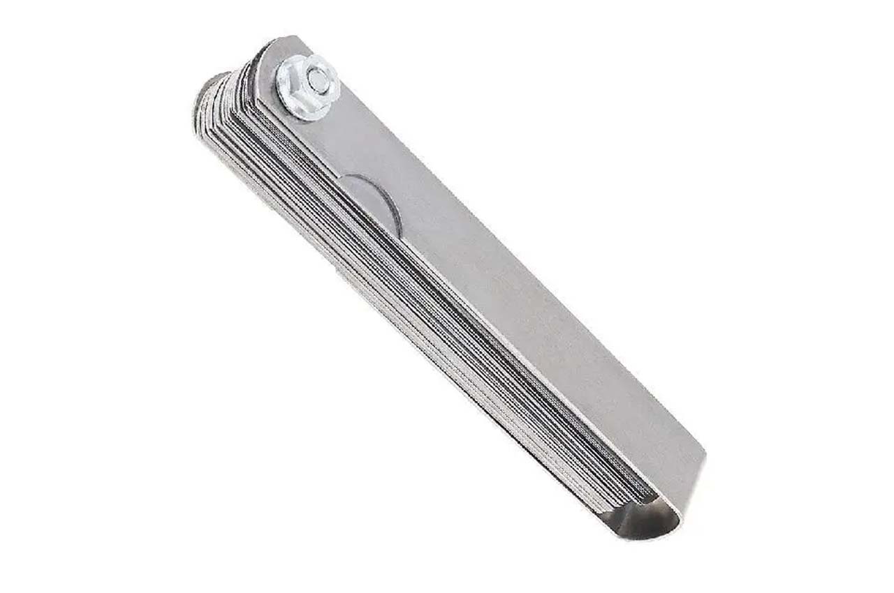 Щуп для измерения зазоров (толщиномер) применяется для измерения всевозможных зазоров, где их невозможно измерить линейкой или штангенциркулем. Позволяет отрегулировать зазор между поверхностями деталей для их правильной работы. В модели 32 лезвия в диапазоне размеров от 0,04 до 0,88 мм, позволяют точно измерять самые узкие зазоры. Каждое лезвие имеет маркировку толщины для легкой идентификации.