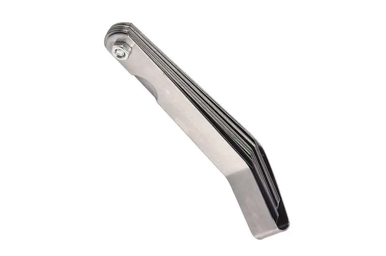 Щуп применяется для измерения различных зазоров, где их невозможно измерить линейкой или штангенциркулем. Позволяет отрегулировать зазор между поверхностями деталей для правильной работы. У модели 12 лезвий в диапазоне размеров от 0,203 до 0,66 мм, позволяют точно измерять самые узкие отверстия между деталями. Сегменты имеют специальную изогнутую форму для измерения отверстий, к которым трудно подобраться, при этом каждое лезвие имеет маркировку толщины для легкой идентификации.
