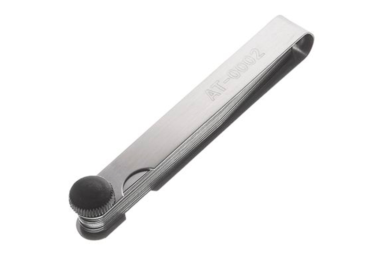 Щуп предназначен для точного измерения зазора между поверхностями, обладающими криволинейной формой. Щупы представляют собой латунные пластины. Всего - 20 сегментов толщиной от 0,05 до 1,0 мм.
