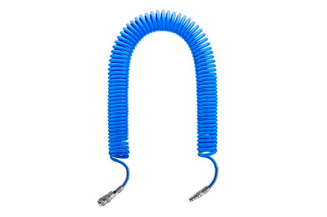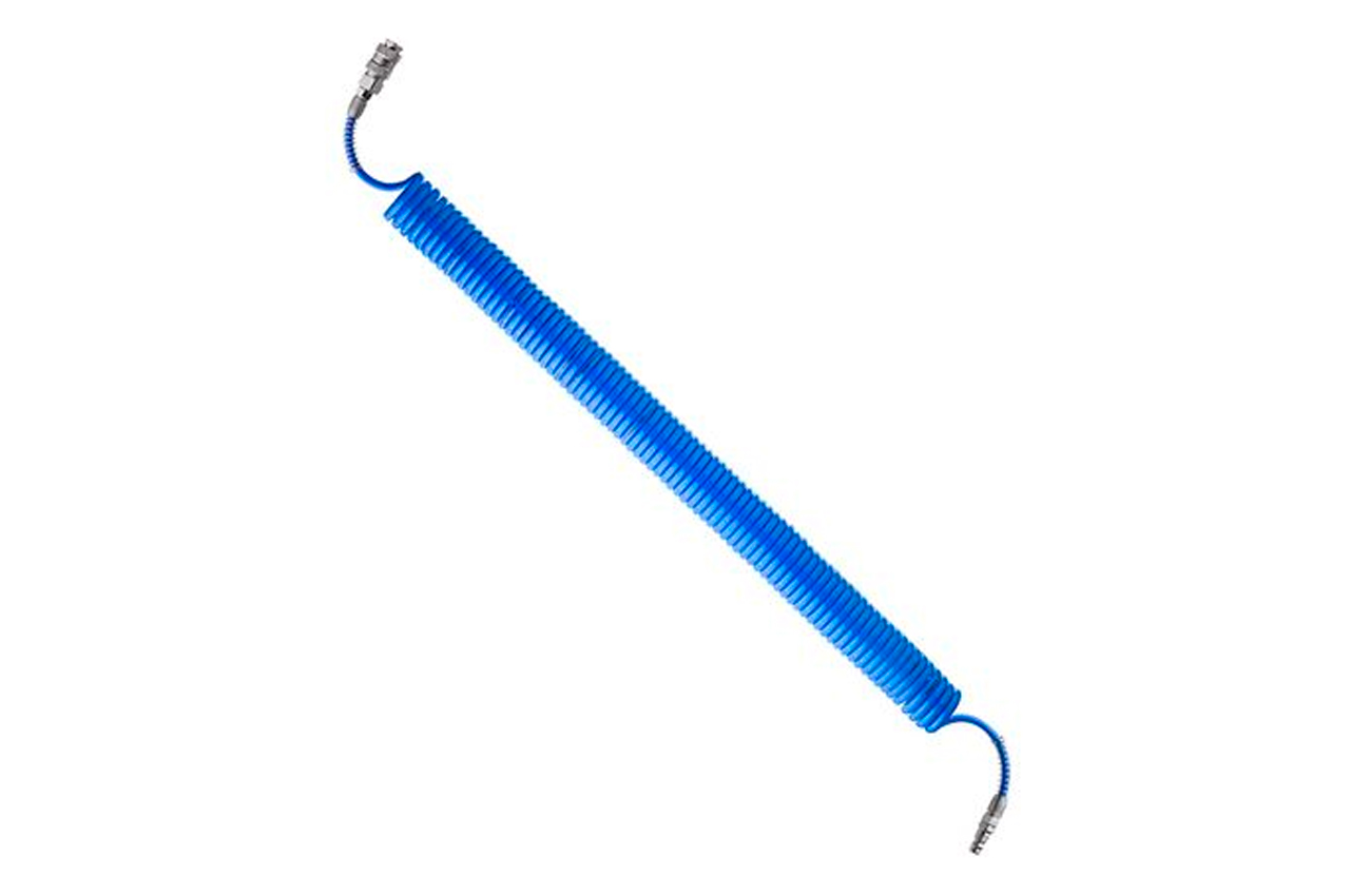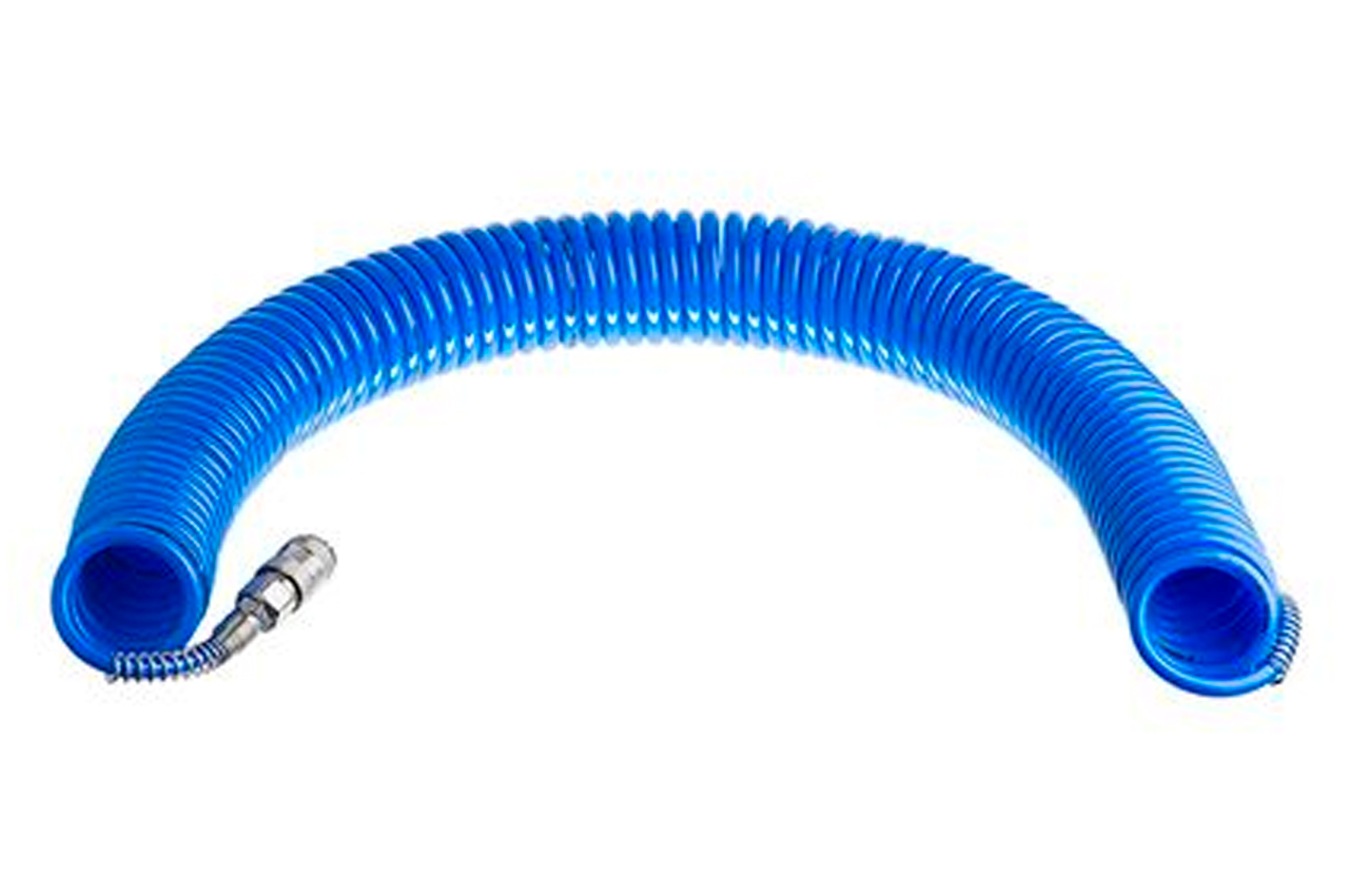 Шланг спиральный, изготовленный из полиуретана, используется для присоединения пневматических инструментов к компрессору. Длина шланга - 15 м, диаметр - 5,5 х 8 мм. Рабочее давление до 15 атм.