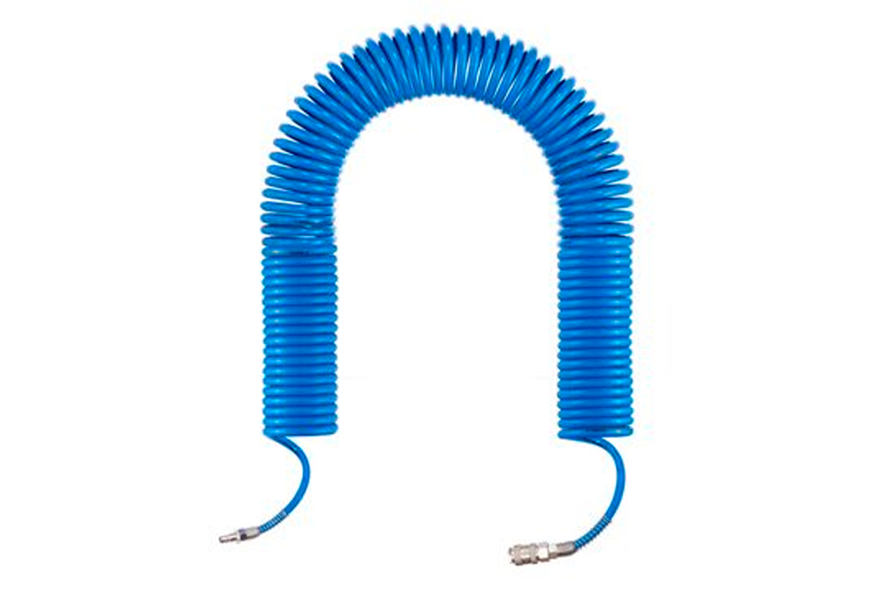 Шланг спиральный, изготовленный из полиуретана, используется для присоединения пневматических инструментов к компрессору. Длина шланга - 15 м, диаметр - 6,5 х 10 мм. Рабочее давление до 12 атм.