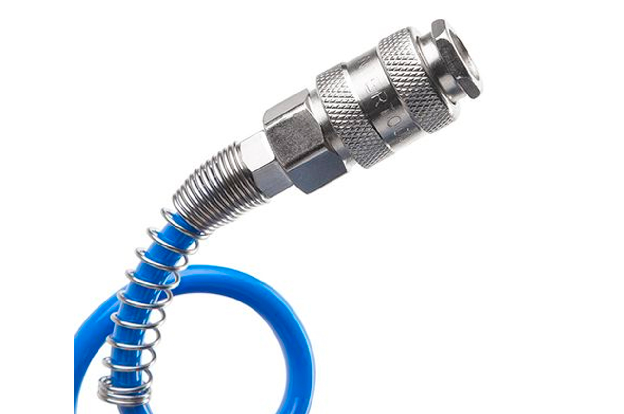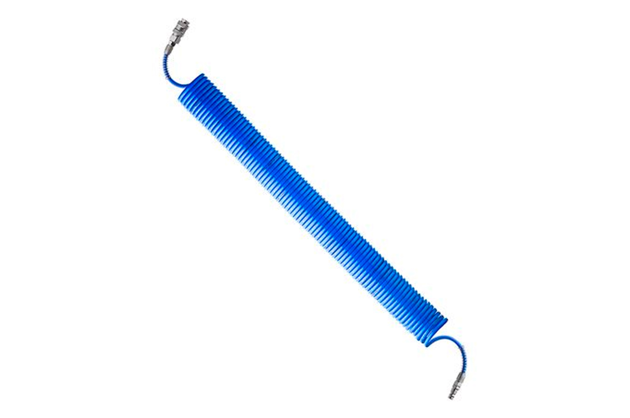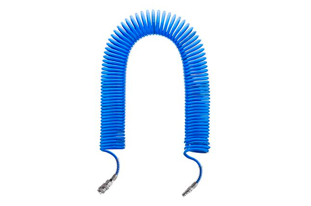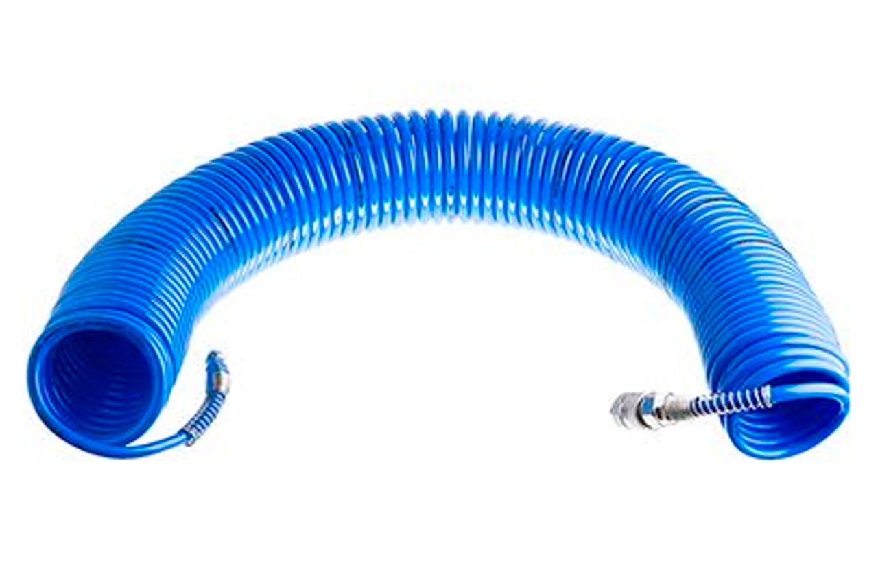 Шланг спиральный, изготовленный из полиуретана, используется для присоединения пневматических инструментов к компрессору. Длина шланга - 20 м, диаметр - 5,5 х 8 мм. Рабочее давление до 15 атм.