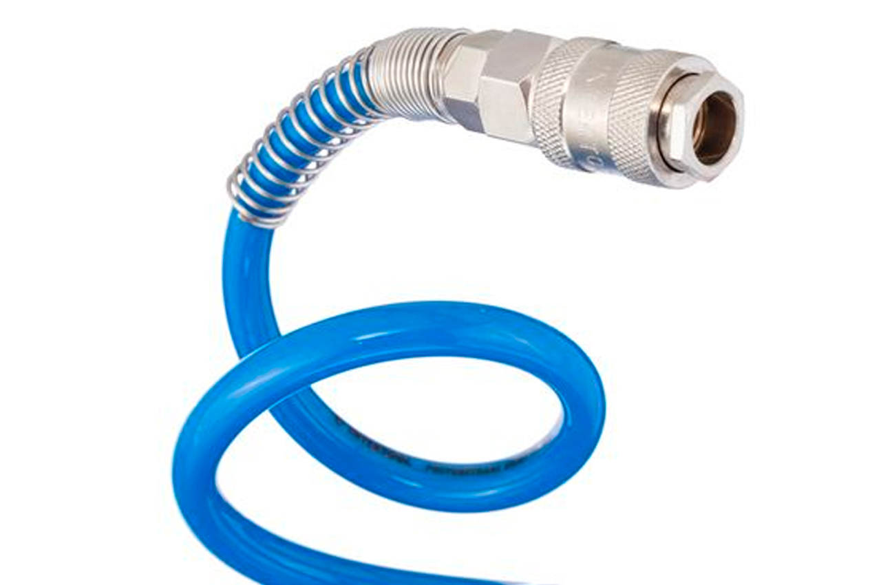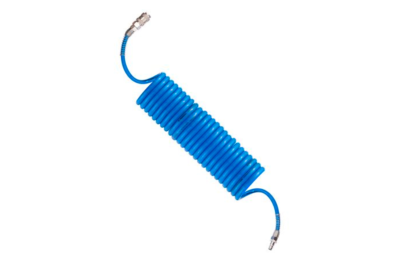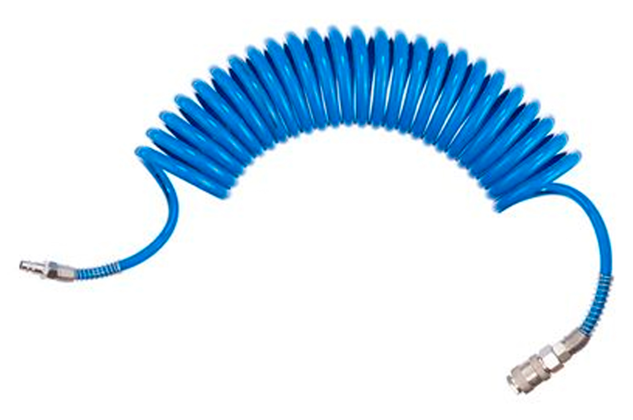Шланг спиральный, изготовленный из полиуретана, используется для присоединения пневматических инструментов к компрессору. Длина шланга - 5 м, диаметр - 6,5 х 10 мм. Рабочее давление до 12 атм.