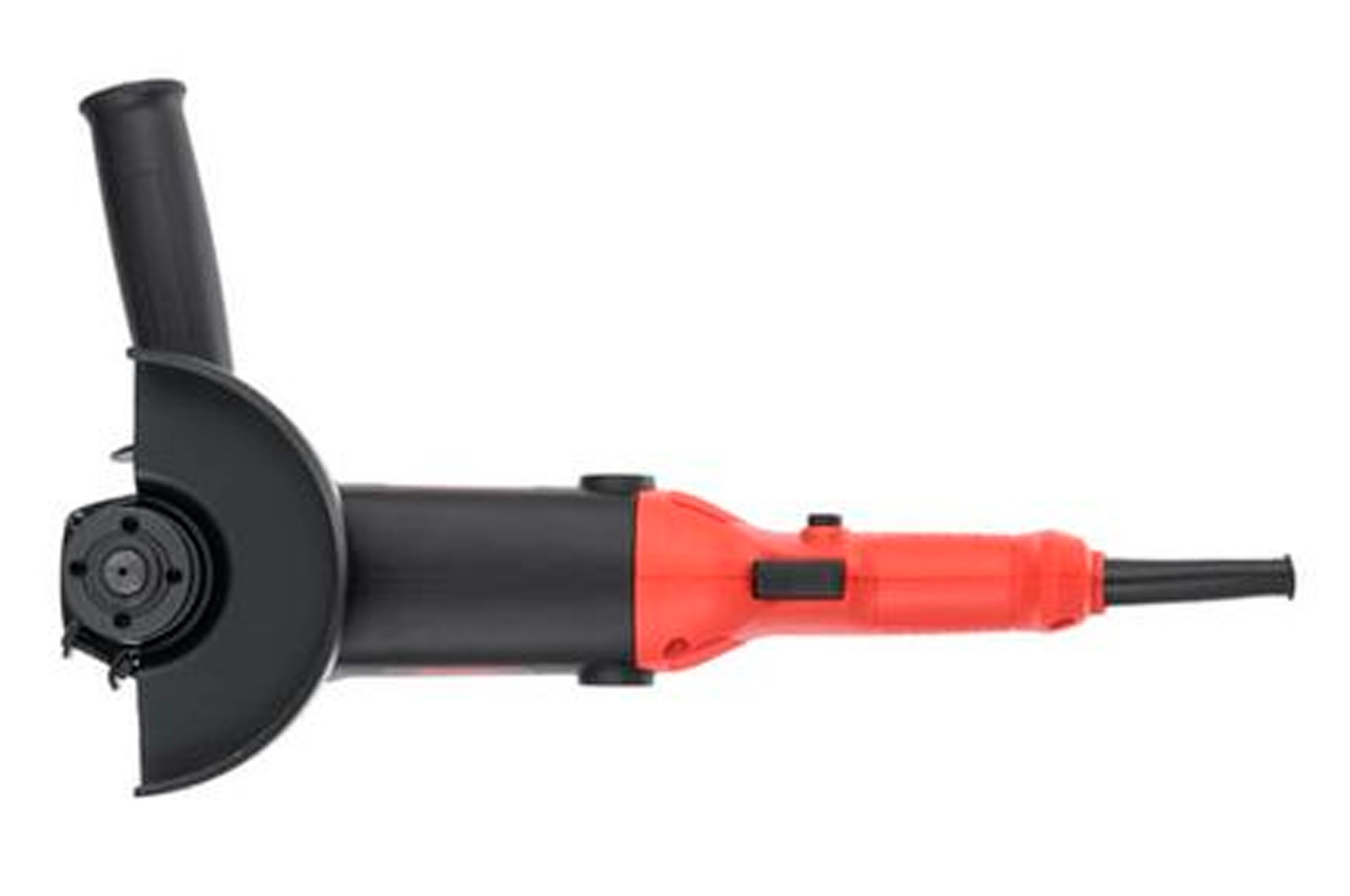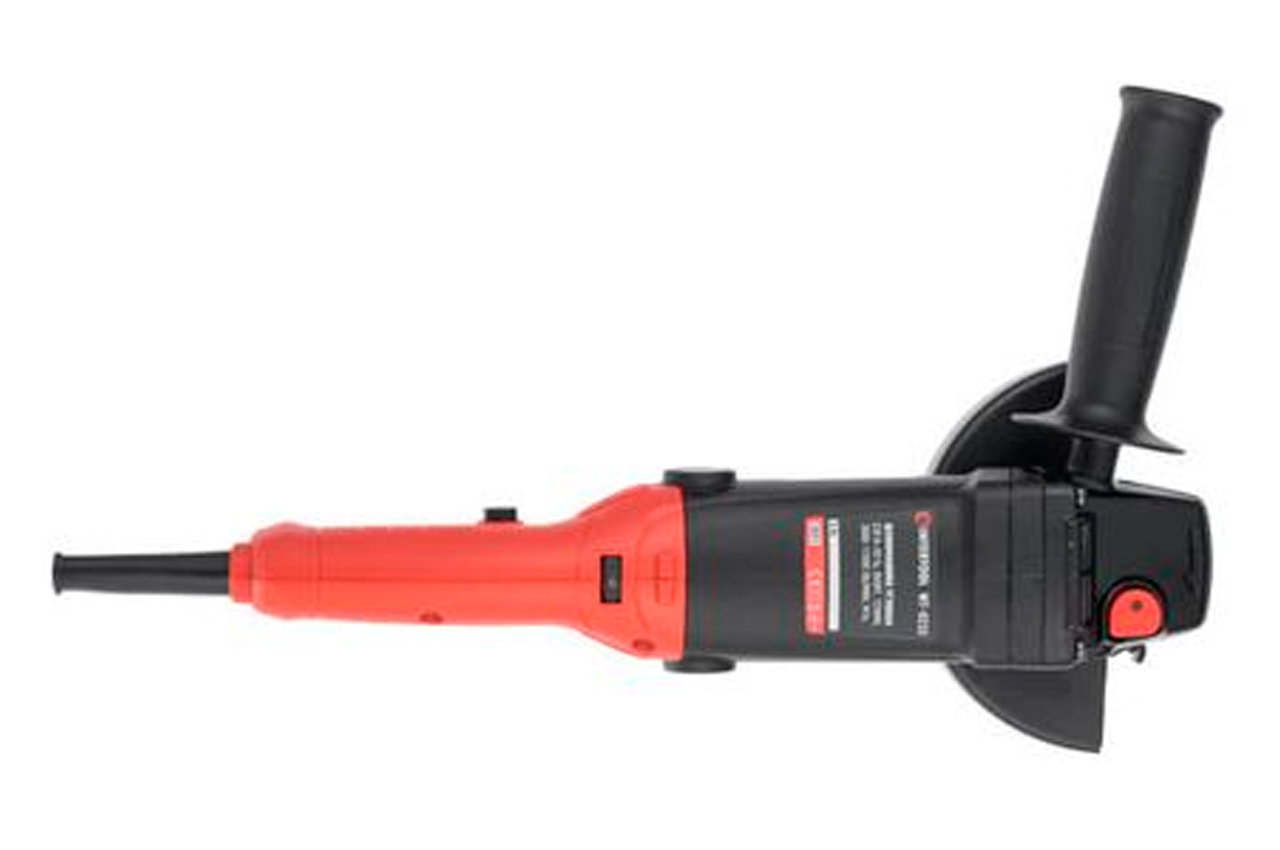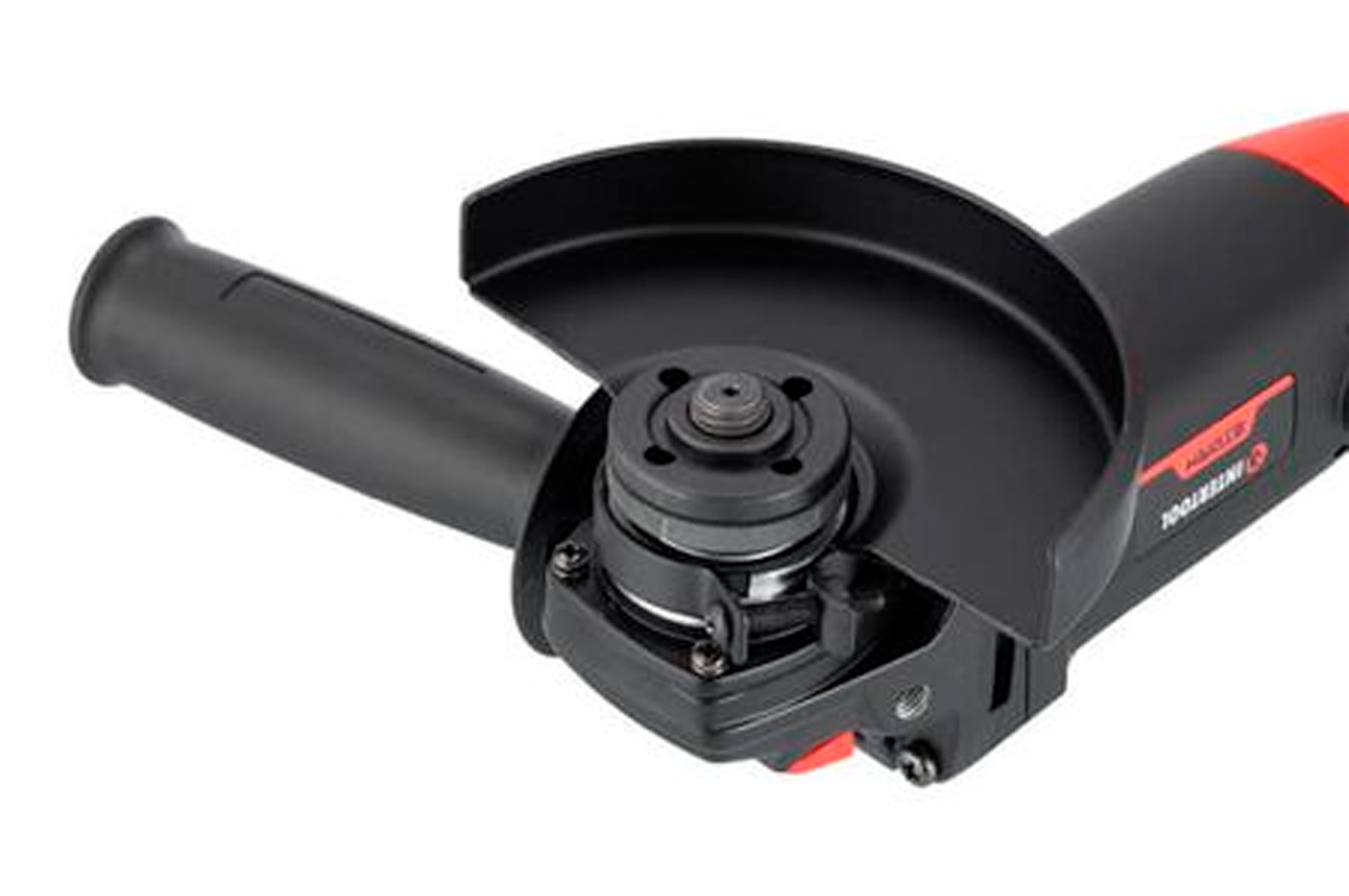 Шлифмашина угловая Intertool-Storm WT-0232. Во время работы данной шлифовальной машины режущие диски расходуются эффективнее, благодаря уменьшенному размеру корпуса редуктора. Мощность двигателя составляет 860 Вт. Модель WT-0232 имеет 6-ти позиционный регулятор оборотов, что позволяет настроить скорость вращения диска в диапазоне от 3000 до 11000 об/мин для выполнения различных задач. Шестерня конической пары крепится к валу методом горячего прессования, что обеспечивает отсутствие люфтов при передаче вращения от двигателя к оснастке. Надежная фиксация диска обеспечивается прижимной гайкой с насечками. Шлифмашина совместима с оснасткой, диаметром 125 мм с посадочным отверстием 22.2 мм, что позволяет ей легко справиться с обработкой металла, дерева, бетона, камня, стекла и других материалов.