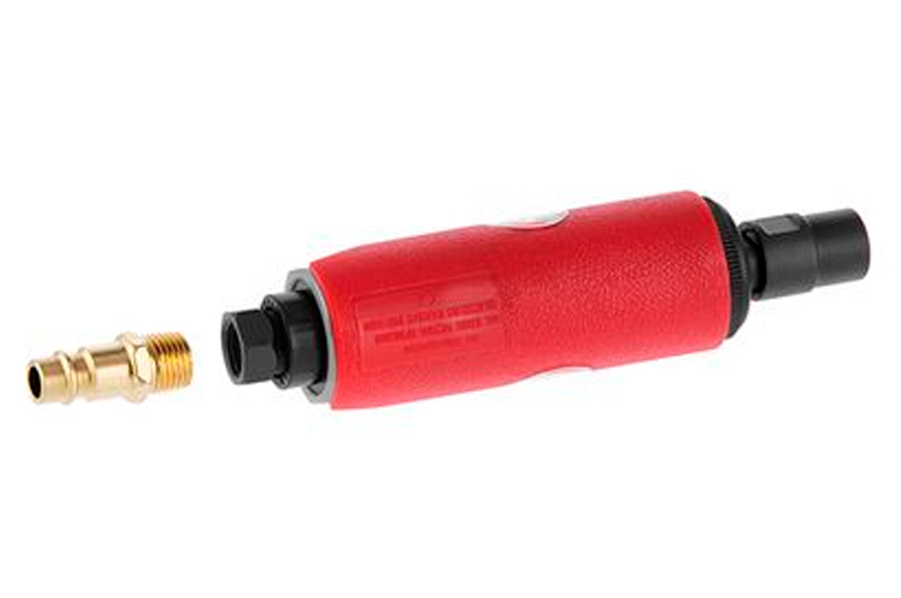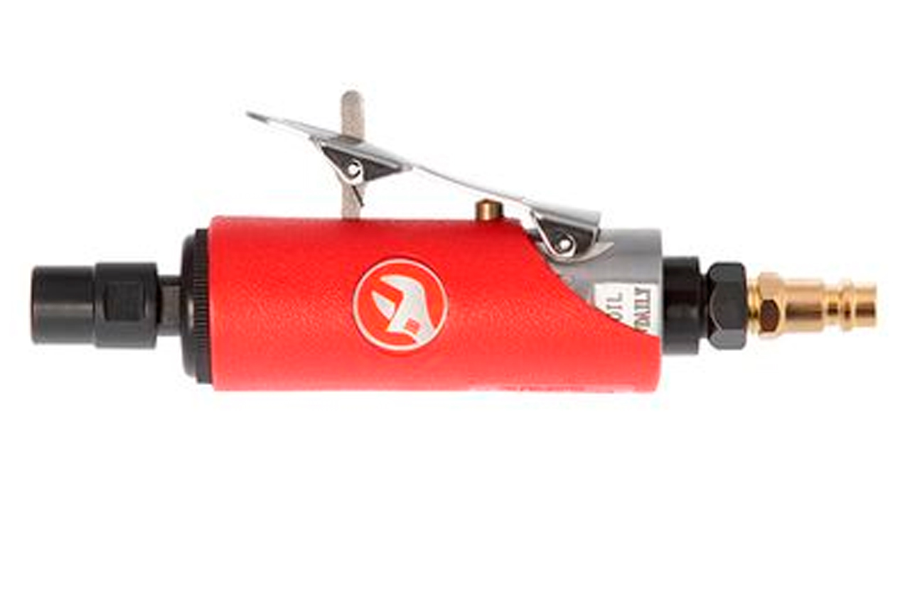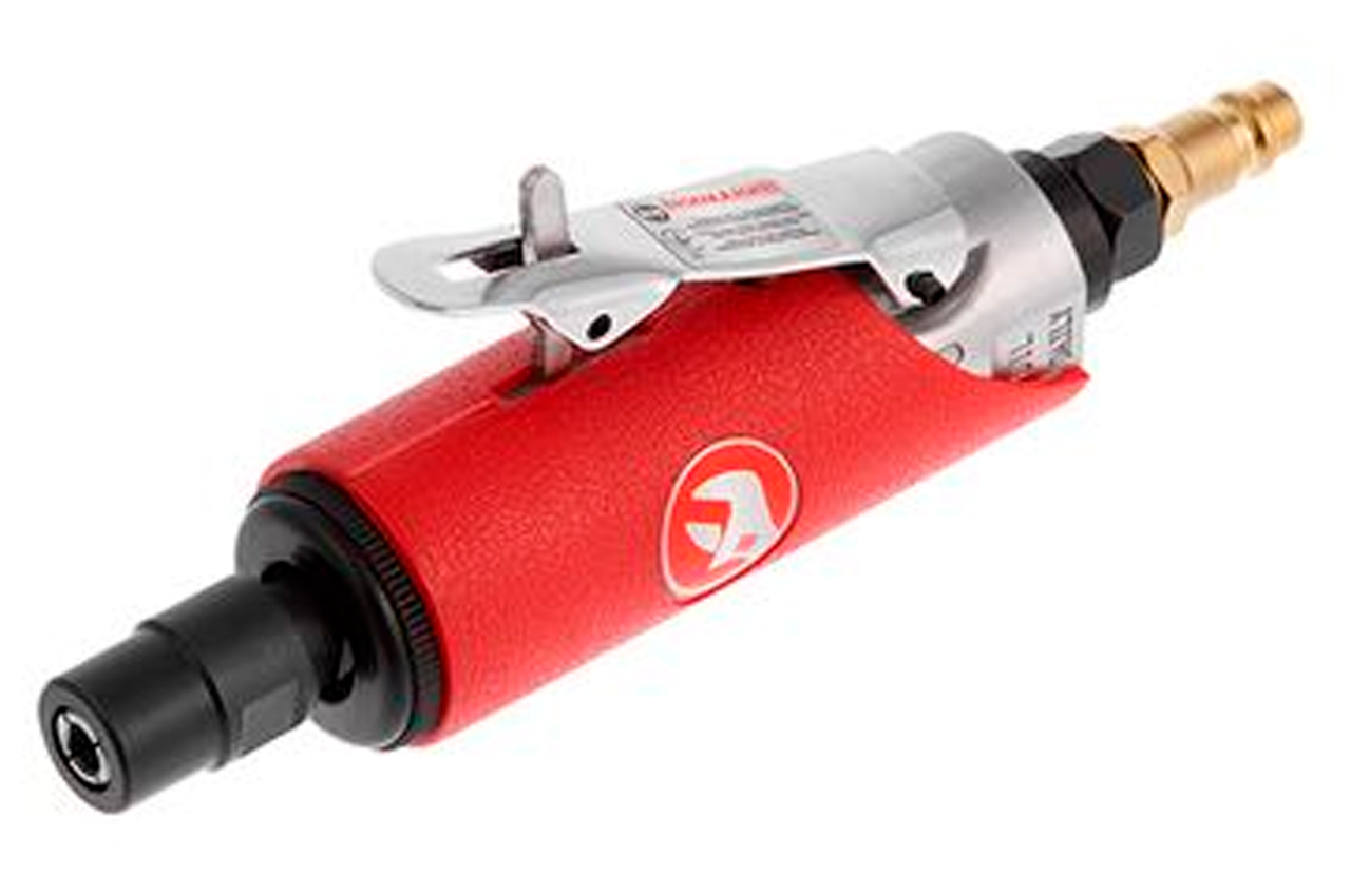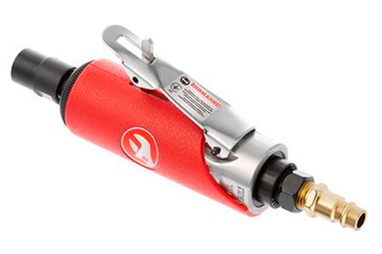 Шлифмашина пневматическая используется со всеми видами насадок для проделывания отверстий, очистки сварных швов, обработки острых краев, снятия кромки, полирования и шлифования. Еще одним преимуществом данного инструмента является легкий, но в то же время прочный алюминиевый корпус. Для удобной работы выход для шланга расположен на задней части инструмента. Дополнительную безопасность обеспечивает наличие предохранительной защелки рычага запуска. Также на предусмотрен регулятор оборотов. Рабочее давление: до 6 атм; Скорость вращения: 25000 об/мин; Расход воздуха: 115 л/мин; Диаметр шланга: 8-10 мм; Цанговый зажим: 6 мм