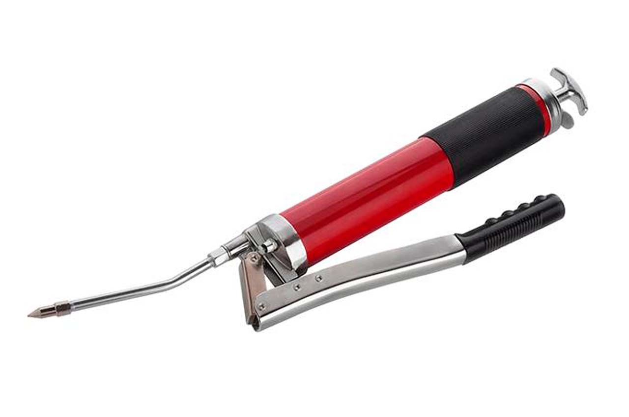 Шприц технический предназначен для внесения консистентной смазки в узлы и агрегаты. Используется для обслуживания карданного вала, подшипников шаровых опор, зубчатых передач. Рабочий объем шприца составляет 500 мл, он заполняется смазкой вручную, а также может использовать смазку в тубусах. Наличие в конструкции двух поршней увеличивает количество смазки в два раза, подаваемую за одну прокачку ручкой-рычагом, в результате процесс смазывания деталей вдвое ускоряется. Инструмент полностью изготовлен из металла с толстыми стенками, он прочен и долговечен, устойчив к коррозии благодаря порошковому покрытию.