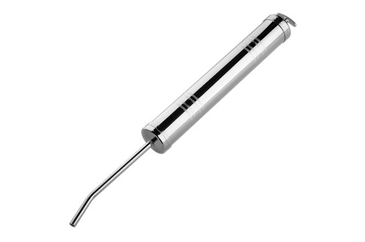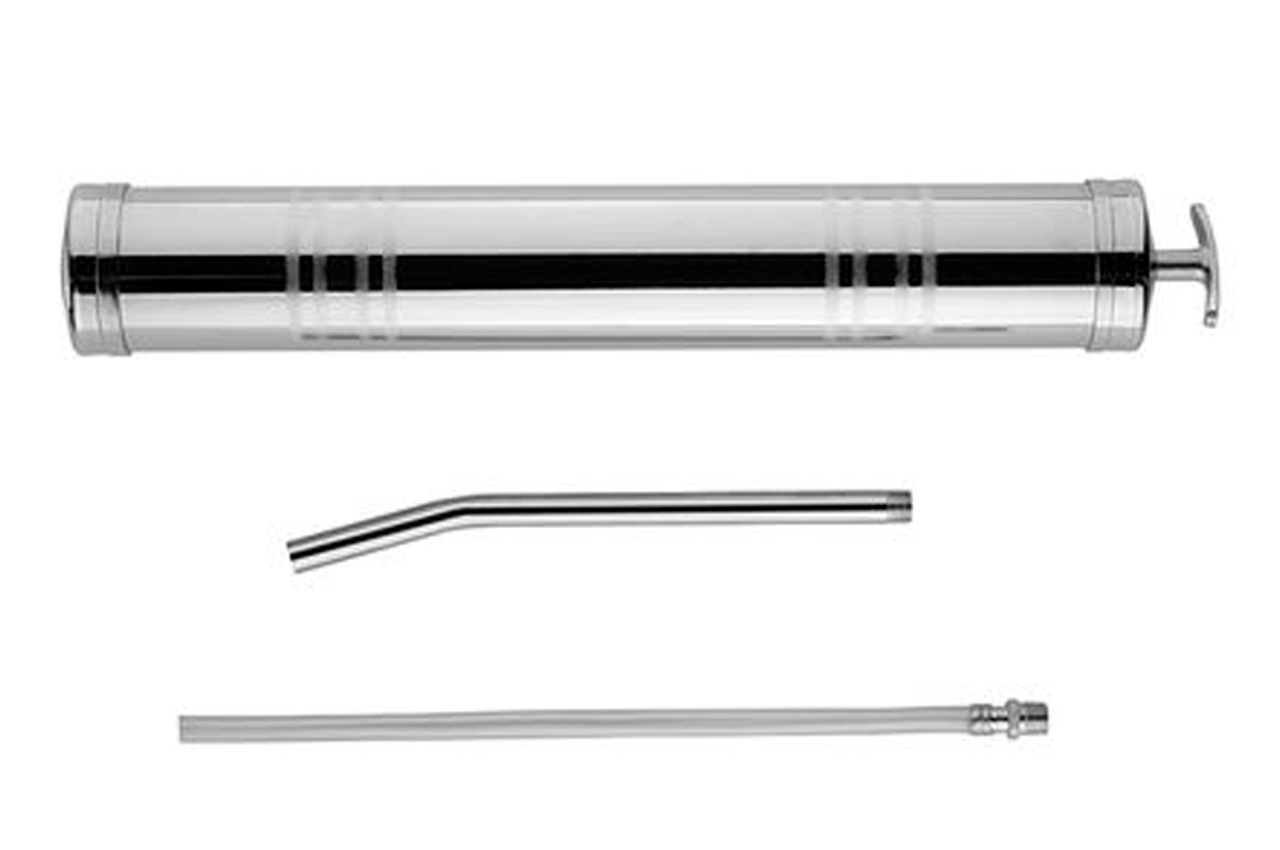 Шприц для заливки масла предназначен для откачки и заливки масел, технических жидкостей в коробки передач, картеры мостов, подшипников и прочих узлов. Изготовлен из алюминия. Укомплектован гибким шлангом.