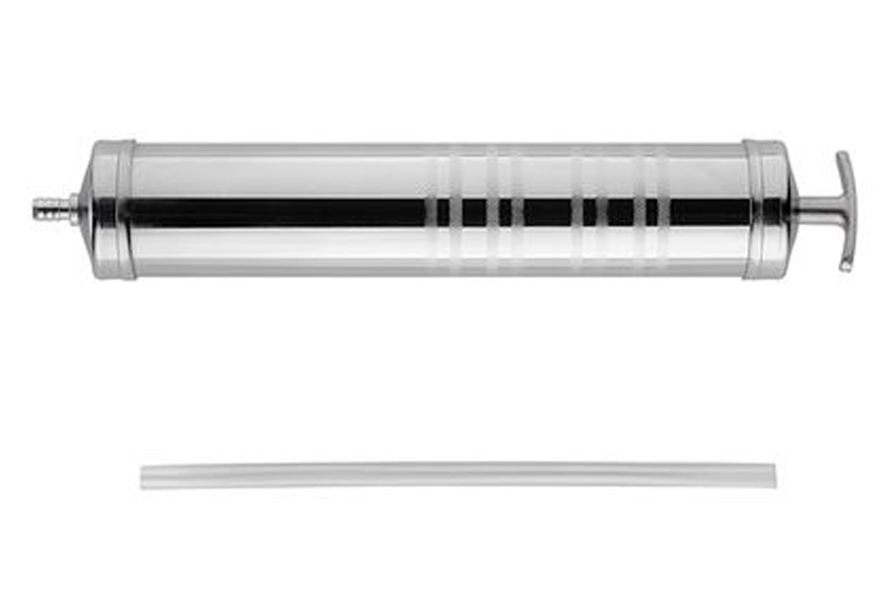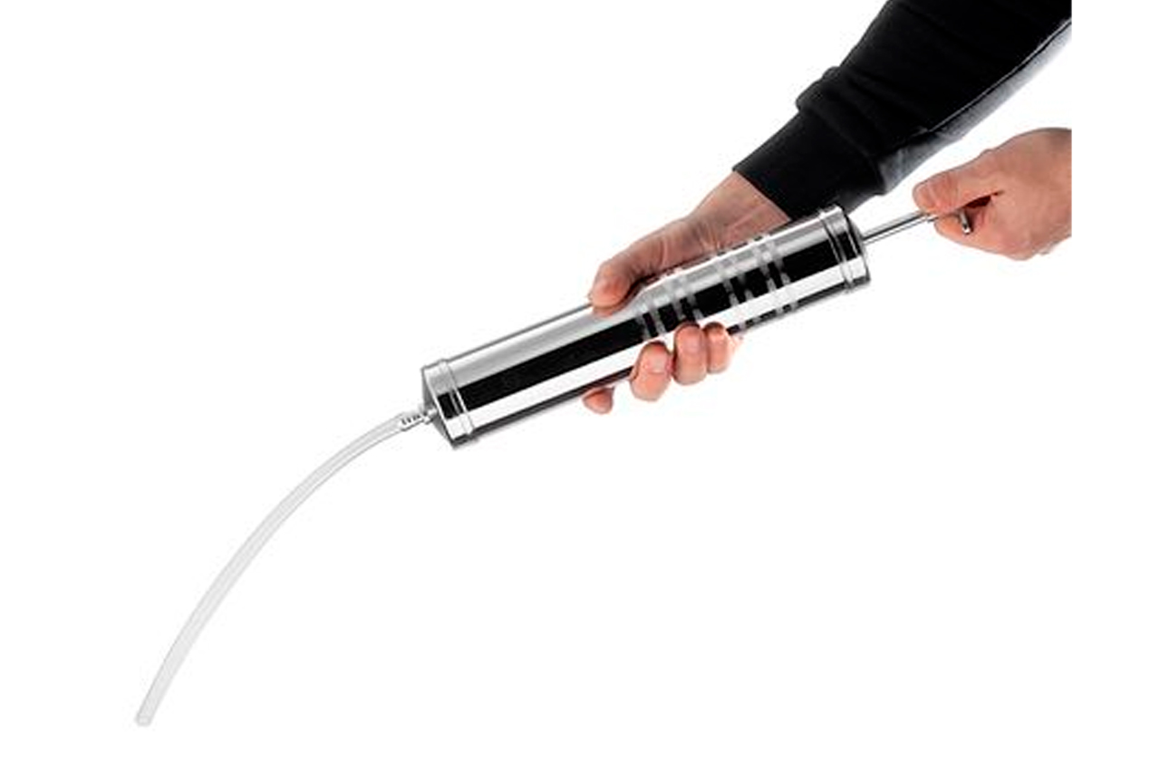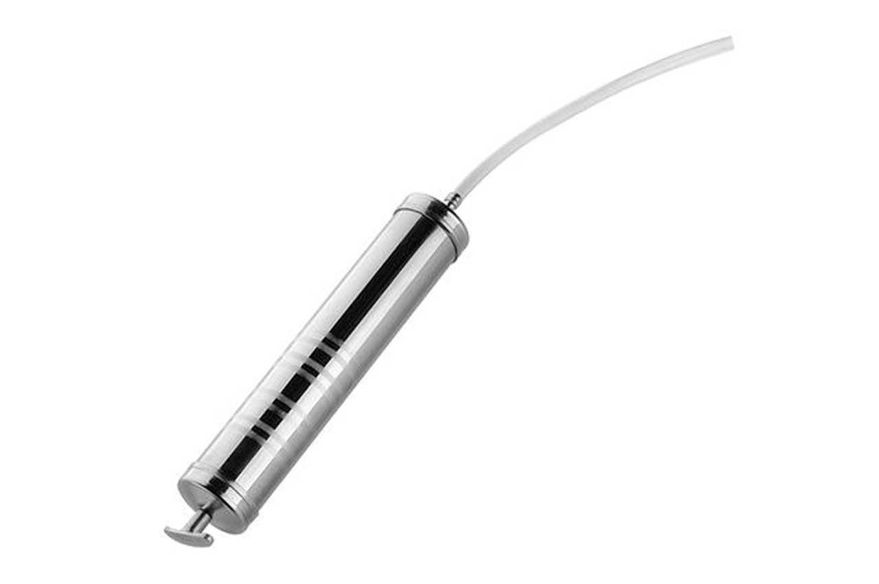 Шприц для заливки масла предназначен для откачки и заливки масел, технических жидкостей в коробки передач, картеры мостов, подшипников и прочих узлов. Изготовлен из алюминия. Укомплектован гибким шлангом.