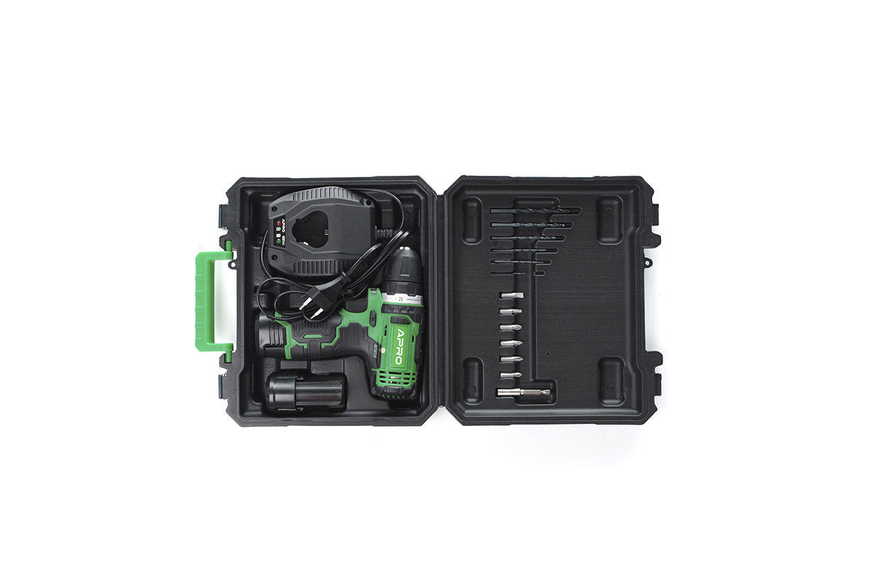 С использованием быстрозажима патрона Вы уменьшаете затраты времени на изменение вида работ. Теперь переход от работы с битой на сверло производится максимально просто. Функция блокировки шпинделя позволяет надежно зафиксировать оснастку, а также быстро производить его замену одной рукой. Концентрация и эффективность без лишних движений.Линейка аккумуляторного инструмента APRO оснащена функцией отображения емкости заряда инструмента, которая предоставляет объем информации обо всем потенциале рабочего времени.12 D отлично подходит для работ на высоте и монтажных работ. Эргономичная и рифленая ручка с прорезиненными вставками помогает лучше удерживать инструмент в руке, защищая его от ускользания. Инструмент оснащен магнитной полосой на корпусе и вы легко можете держать при себе шурупы, биты или другие материалы.