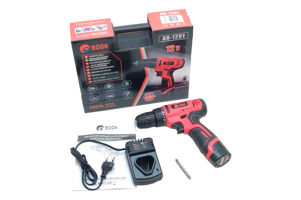 Шуруповерт аккумуляторный Edon - 12В x 1,5Ач Li-Ion