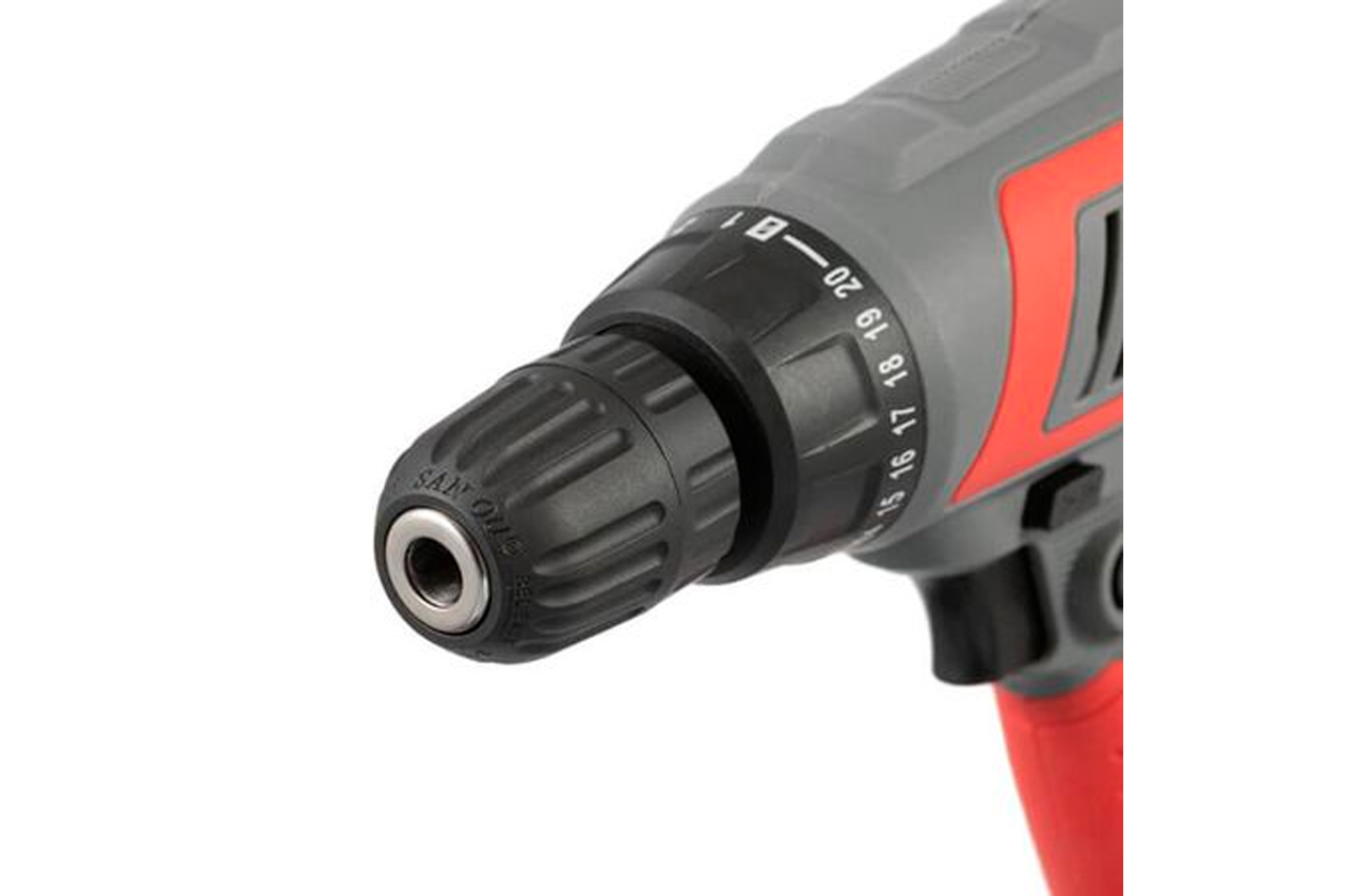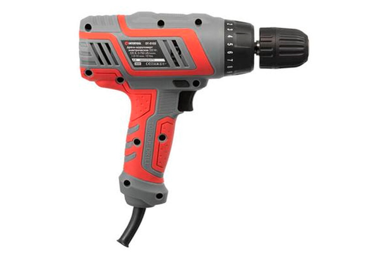 Электрический шуруповерт (дрель-шуруповерт) – ручной электрический инструмент предназначен для сверления отверстий, заворачивания и отворачивания шурупов и винтов. Электрический шуруповерт DT-0103 оснащен двигателем мощностью 320 Вт. Максимальная скорость вращения электрического шуруповерта составляет 0-750 об/мин. За счет электронной регулировки числа оборотов достигается бесступенчатая подгонка чисел оборотов соответствующему рабочему процессу. А возможность выбора крутящего момента позволяет использовать шуруповерт для различных целей. Диаметр сверления электрического шуруповерта составляет: для стали 5 мм, для дерева 10 мм. К сверлильному патрону электрического шуруповерта DT-0103 также подойдут промышленные сверла и биты диаметрами до 10 мм.