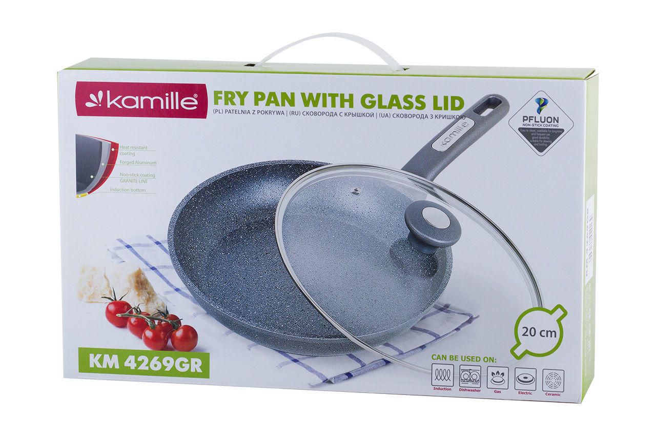 Сковорода антипригарная Kamille - 200 мм Granite с крышкой