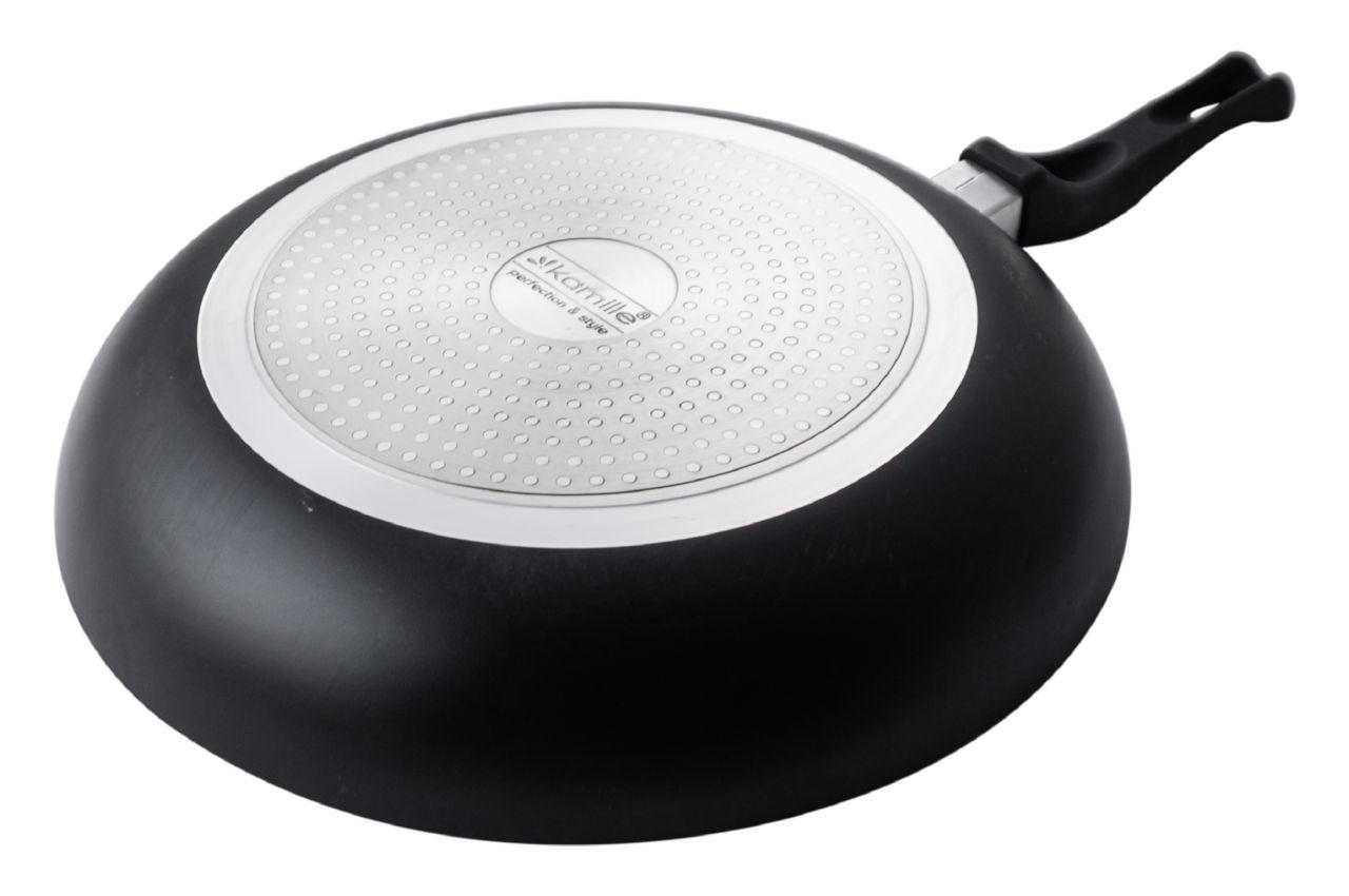 Сковорода антипригарная Kamille – 300 мм. Благодаря прочному антипригарному покрытию такая сковорода устойчива к механическим воздействиям, за счет чего значительно увеличивается срок ее службы. Сковорода нагревается равномерно, не создавая перегретые участки и холодные края, даже в тех случаях, когда процесс приготовления пищи идет на небольшом огне. В результате сокращается время приготовления блюда и уменьшается риск есть смесь недожаренной или пережаренной пищи.
