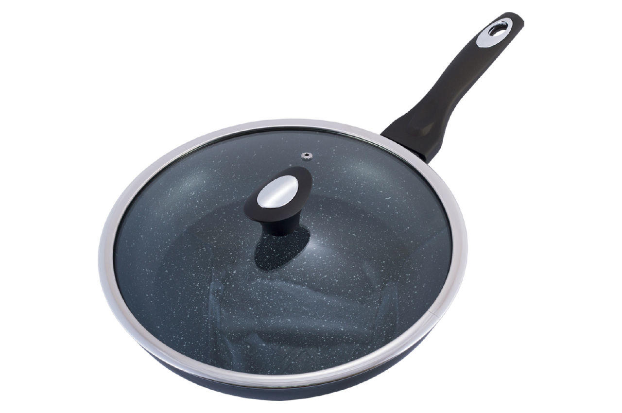 Сковорода антипригарная Kamille - 300 мм Black Marble с крышкой