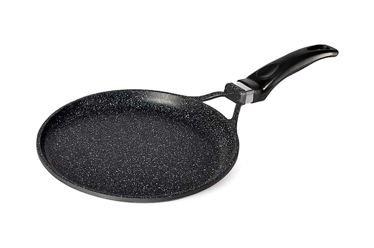 У каждой хозяйки должна быть специальная сковорода для приготовления блинов. Без нее просто никак не обойтись: оладьи, сырники, блинчики и просто яичницу жарить удобнее всего именно на ней. Преимущества блинной сковороды TM BIOL: — мгновенная готовность к работе; — утолщенное дно со временем не деформируется; — простой уход; — не пригорает и не прилипает; — меньший расход масла; — ручка крепкая и удобная; — гранитное покрытие толщиной до 40 мкм. Сковорода удобна, почти не нуждается в масле, и печь отличные блины на ней могут даже новички. Это прекрасный выбор для всех хозяек, особенно для тех, кто только начинает готовить!