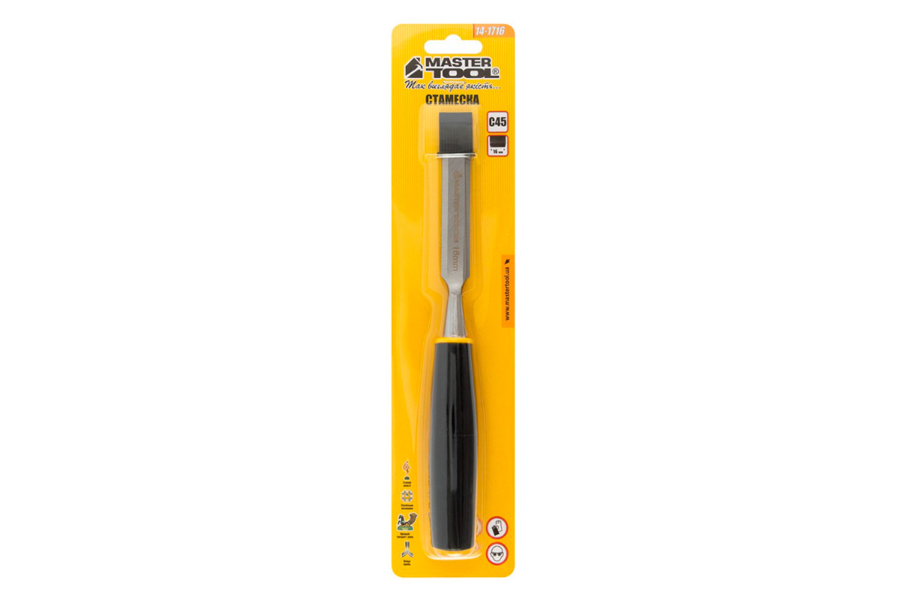 Стамеска 16 мм, пластиковая рукоятка. Предназначены для строгания, выборки неглубоких гнезд, пазов, прорезания отверстий в древесине мягких и твердых пород.