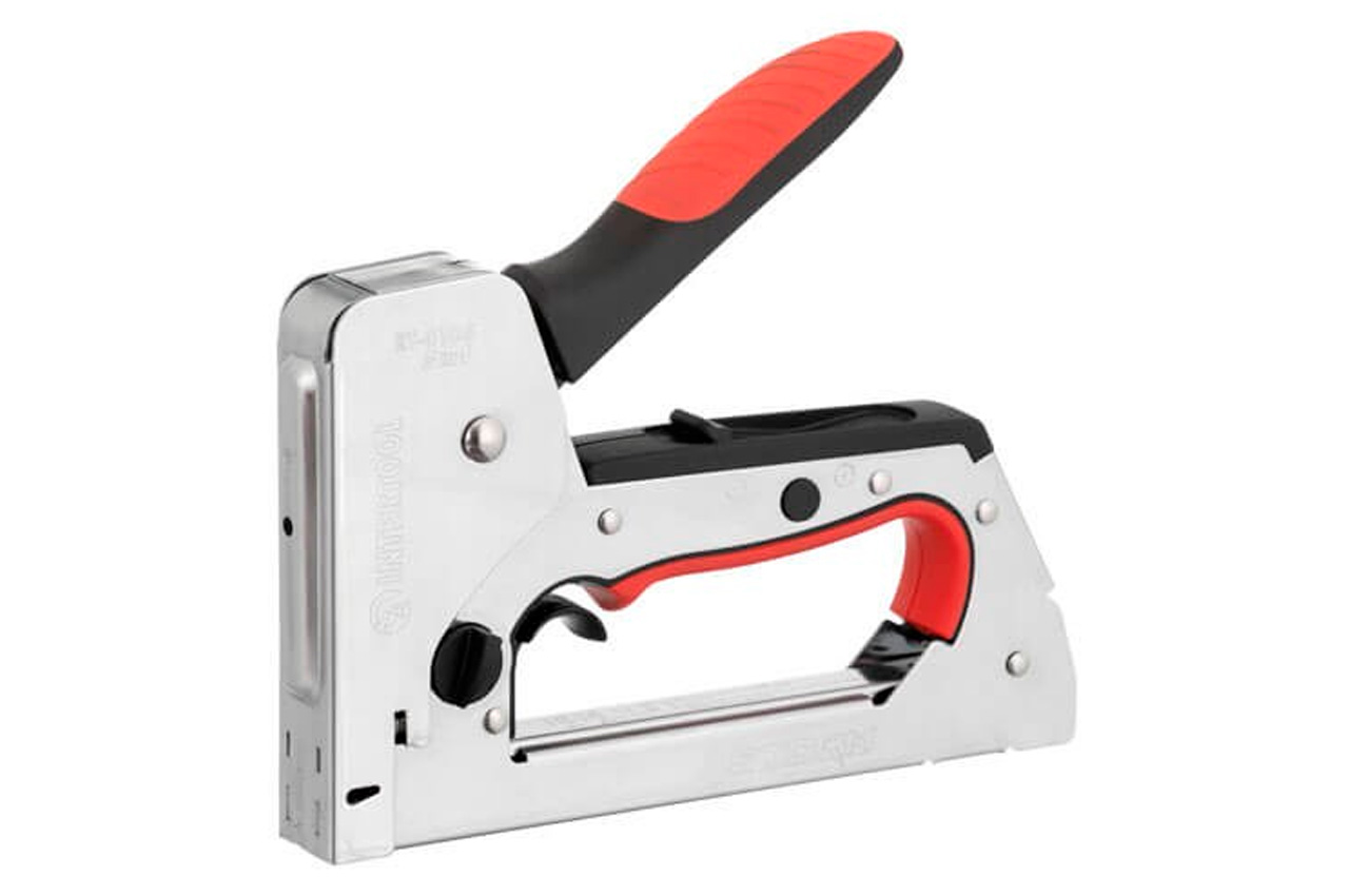 Степлер строительный 3 в 1 RT-0105 предназначен для ремонтных, профессиональных работ, в частности для крепления различных материалов к поверхностям (ДСП, ДВП, фанеры, пленки, утеплителя). Применяется также для быстрой обивки мебели, обшивки стен пластиком или вагонкой, для крепления проводов, ковролина, рубероида и пр. Работает со скобами от 6 до 14 мм, а также со шпильками и гвоздями 14 мм. Режим триггера Благодаря функции Trigger Mode вы легко и точно забьете крепление в самых труднодоступных местах. Для этого необходимо перевести переключатель в режим триггера, сжать ручку для взведения механизма, прижать степлер к поверхности закрепляемого изделия и нажать на спусковой крючок для забивания скобы, гвоздя или шпильки. Эффективная работа с увеличенным ресурсом - Рабочий ресурс степлера - 50 000 ударов.- Регулировка силы удара позволяет работать с различными по плотности материалами, не деформирую мягкие поверхности, а твердые без необходимости добивать скобы. - Быстрая загрузка скоб позволяет загружать скобы одной рукой, менее чем за полминуты. - Степлер с рессорным механизмом гарантирует сильный и точный удар. Удобство - Низкая отдача не позволяет уставать рукам даже во время продолжительных работ. - Прорезиненная рукоятка отлично сцепляется с ладонью, не скользит, и обеспечивает максимальный комфорт. - Прочный металлический корпус убережет степлер от механических повреждений. Высота скобы: 6-14 мм; Ширина скобы: 11,3 мм; Сечение скобы: 0,7 мм; Высота шпильки: 14 мм; Высота гвоздя: 14 мм
