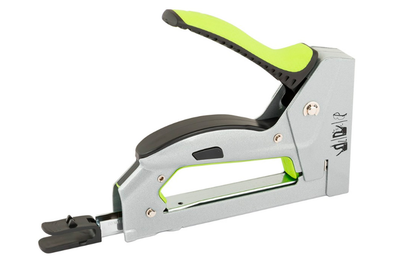 Ударный механизм рессорного типа; ударный ресурс > 100 000 ударов; эргономичная ручка с TPR накладками; фиксация ручки для удобного хранения; клипса на ремень в комплекте; удобная упаковка "Прикоснись ко мне"; размер скобы 6-10 мм