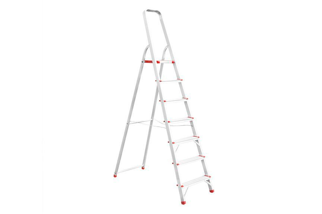Стремянка алюминиевая изготовлена из прочного алюминиевого профиля. Легко раскладывается и складывается, имеет 7 нескользящих рифленых ступеней и площадку, удобный поручень. Высота до платформы – 1500 мм, выдерживает нагрузку до 150 кг, весит 5,6 кг. Оснащена пластиковыми наконечниками на ножки, предотвращающими скольжение и царапанье поверхности. Профиль: алюминиевый прямоугольный; Количество ступеней: 7 ед.; Высота до платформы: 1500 мм; Максимальная нагрузка: 150 кг