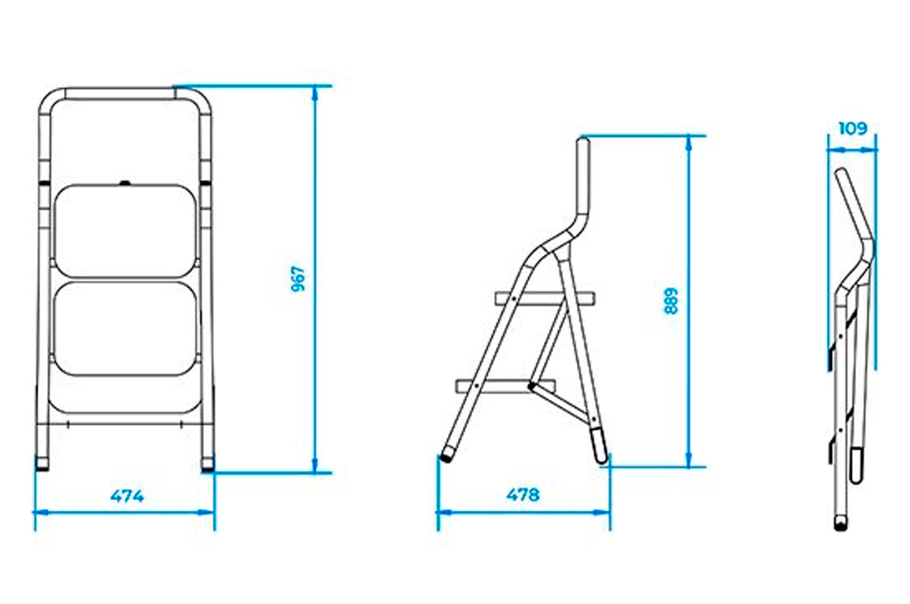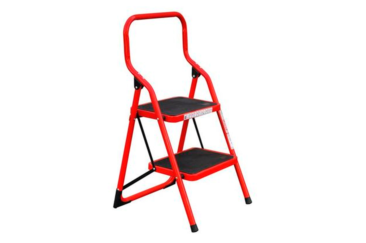 Стремянка изготовлена из круглого стального профиля, имеет 2 широкие высокопрочные ступени с нескользящими резиновыми накладками размером 380*260 мм. Пластиковые опорные заглушки предотвращают нежелательное скольжение стремянки и царапанье поверхности. Высота стремянки 895 мм, вес 5,75 кг. Легкая, устойчивая и практичная, выдерживает нагрузку до 150 кг. Легко собирается, удобна и компактна в хранении. Профиль: стальной круглый профиль; Количество ступеней: 2 ед.; Размер ступени: 380x260 мм; Максимальная нагрузка: 150 кг