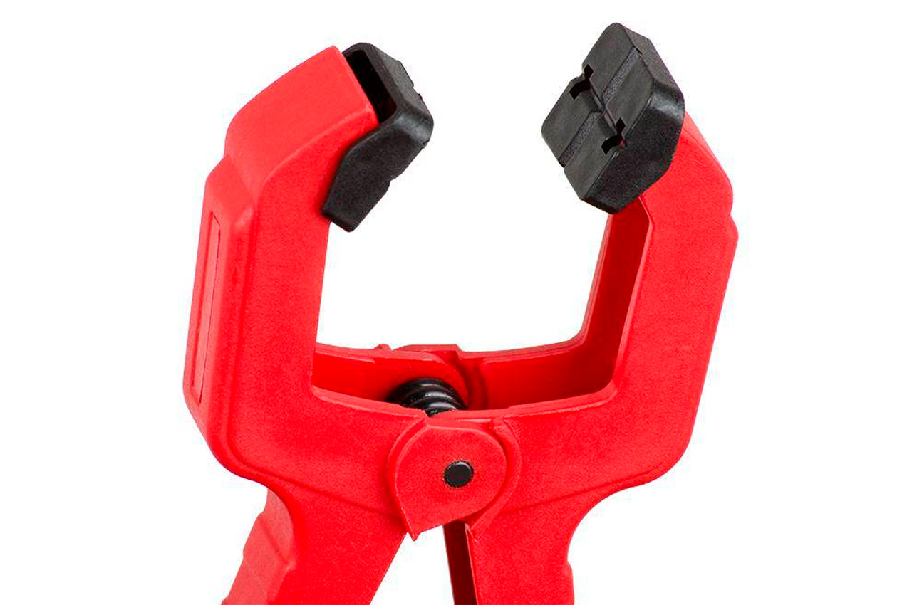 Легкий, компактный, эргономичный корпус выполнен из высокопрочного пластика. Прижимные губки также выполнени из пластика, что защитит поверхность зажимаемого изделия от повреждений и царапин. Максимальная ширина захвата: 35 мм; Усилие зажима: 4,6 кгс