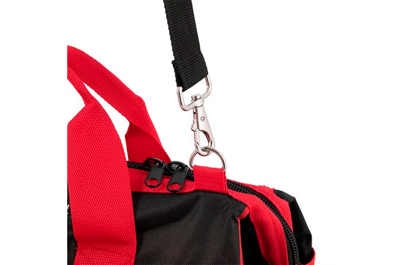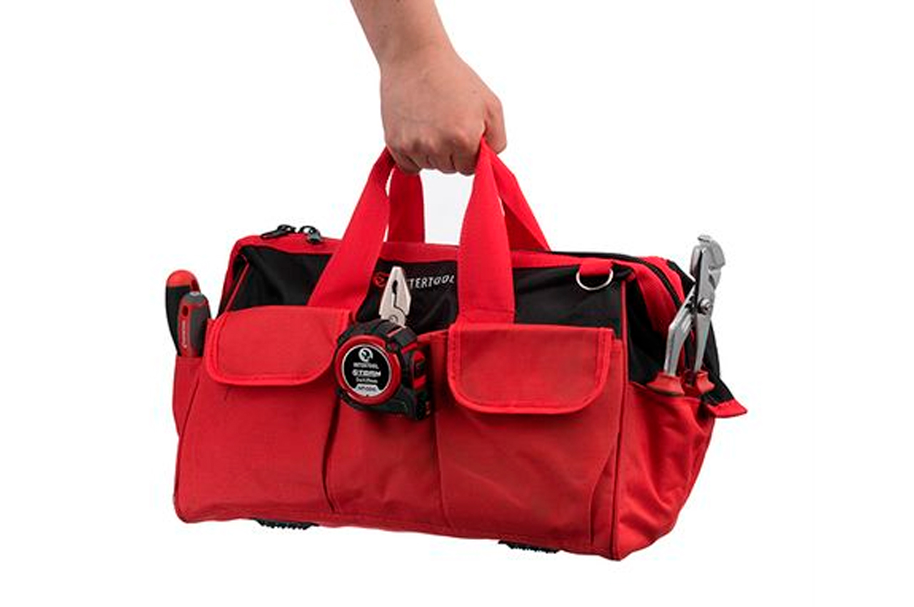 Сумка для имеет 16 карманов и габариты - 405*230*300 мм. На передней части сумки расположено три больших вместительных кармана. Это самый оптимальный вариант сумки для инструмента. Для удобной транспортировки сумка имеет плечевую лямку с прорезиненной накладкой. Габаритные размеры: 405x230x300 мм; Количество карманов: 16