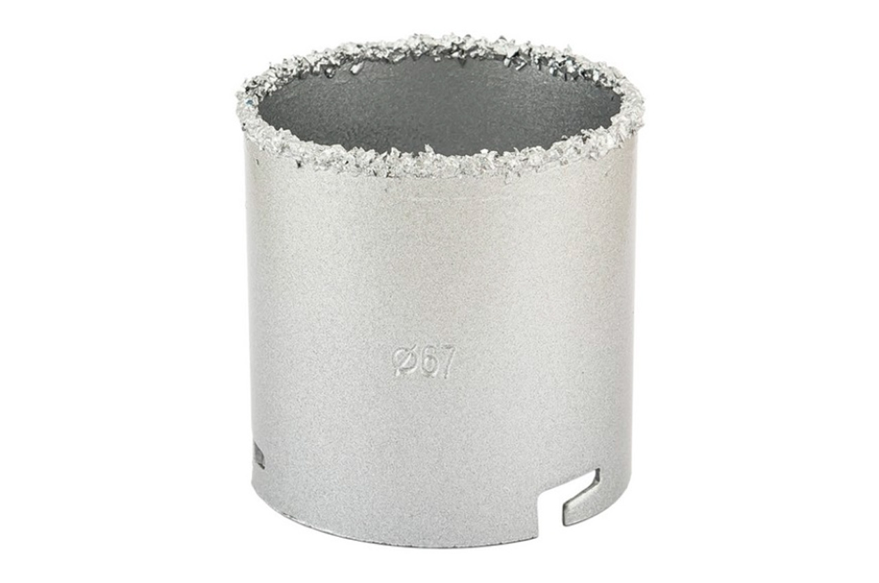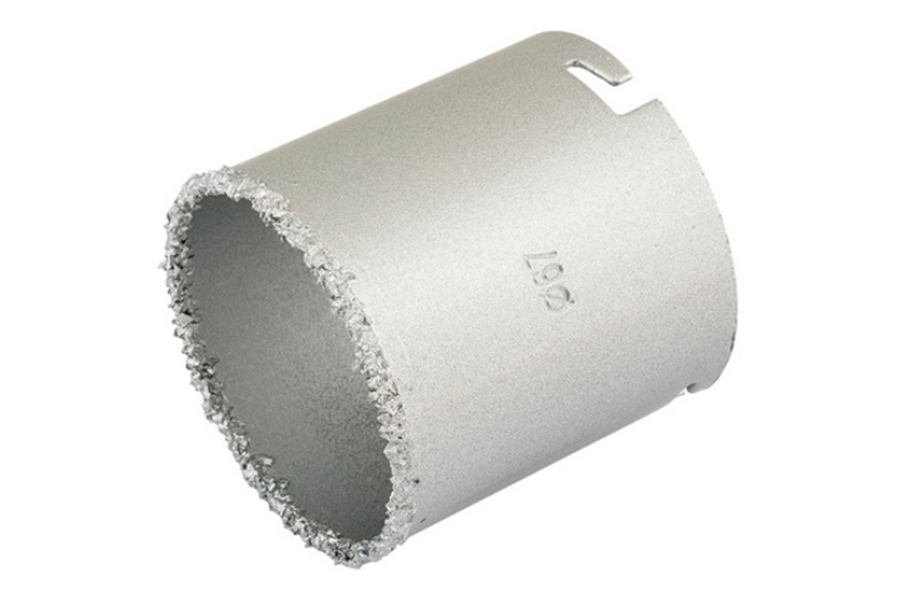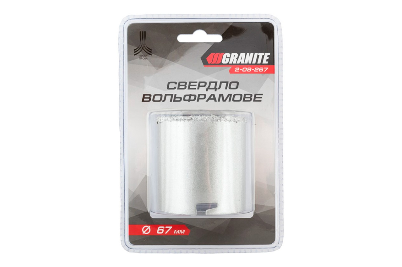 Изготовлено из стали с вольфрамовым напылением; используется для керамики, стекла, пластика, бетона, кирпича; при сверлении бетона и кирпича требует охлаждения водой; рекомендуемая частота вращения 800-1500 об/мин