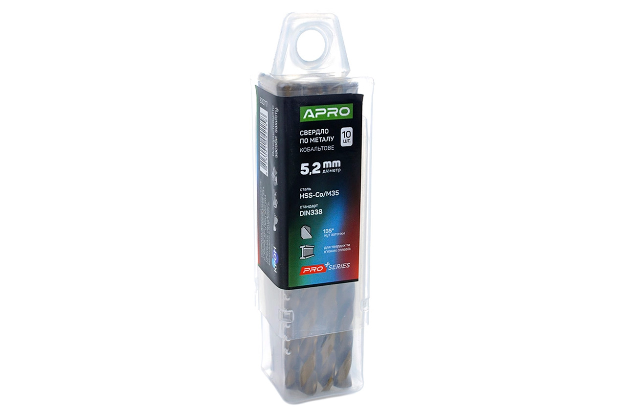 Сверло по металлу Apro – предназначено для сверления отверстий в металлических материалах, включая сталь, чугун, алюминий и другие сплавы. Диаметр сверла 5,2 мм. Тип стали: Кобальт Co/M35.