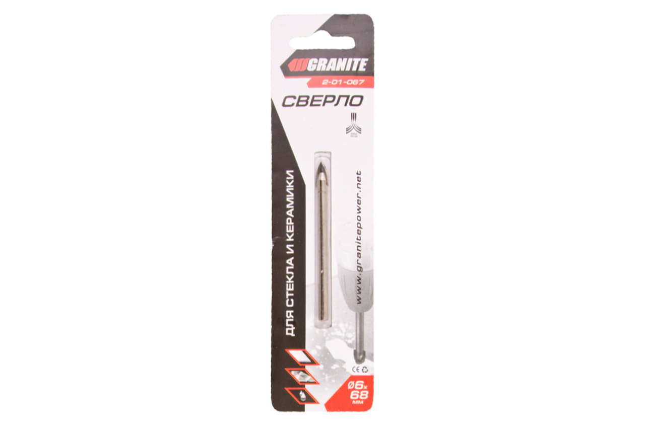Используется для образования сквозного или глухого отверстия в сплошном материале и/или для увеличения диаметра имеющегося отверстия. Применяется для отделки стекла, керамики, кафеля. Диаметр сверления – 6 мм.
